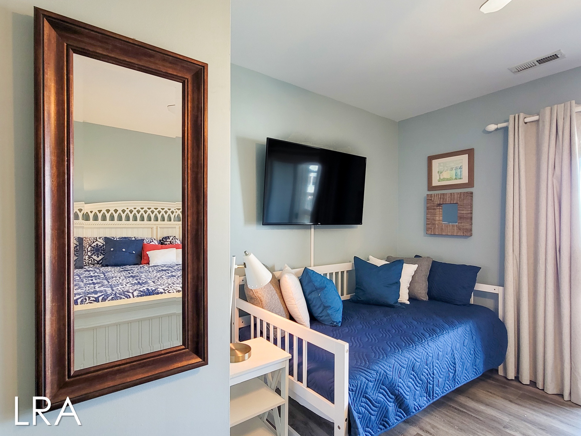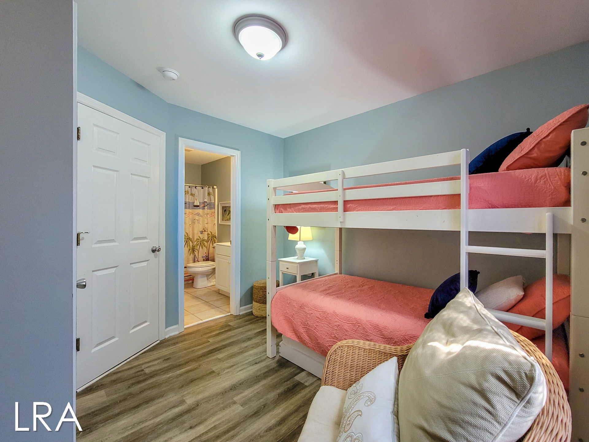 Bed sizes include a King, a Queen, a Twin Bunk Bed with Trundle, and a Queen Sleeper Sofa. Pillows, spreads, and blankets are provided. Please arrange to bring your own sheets and towels.