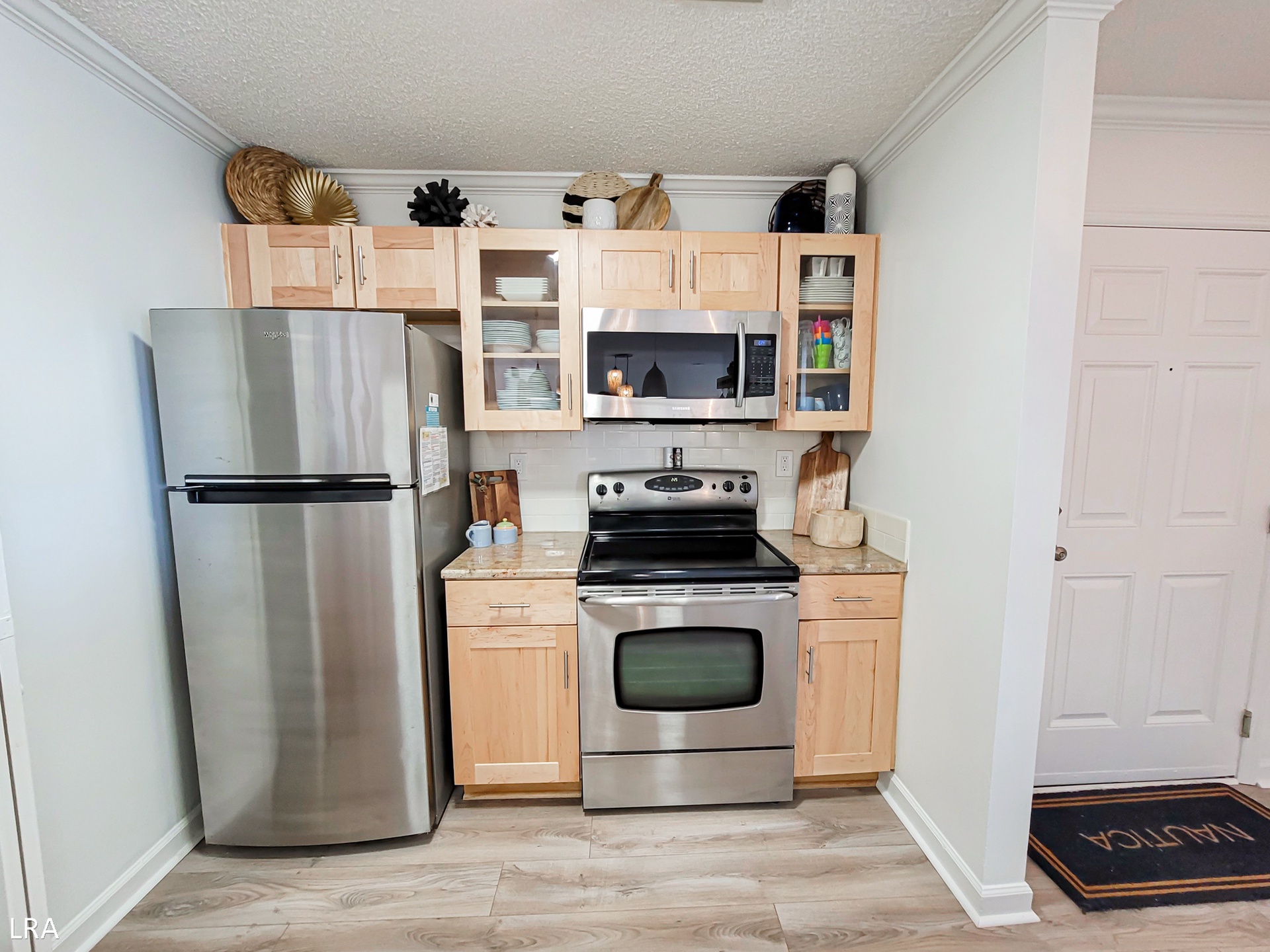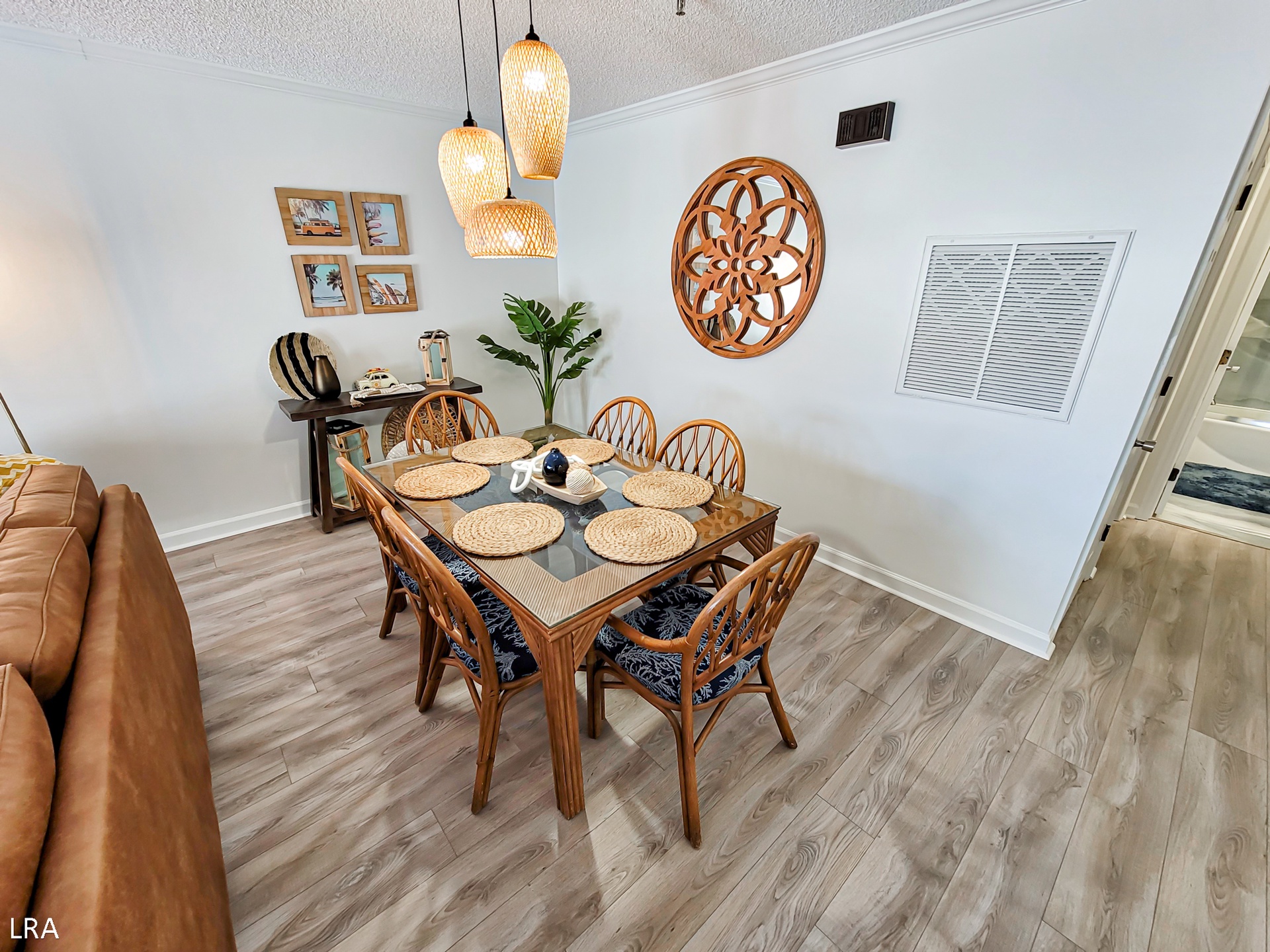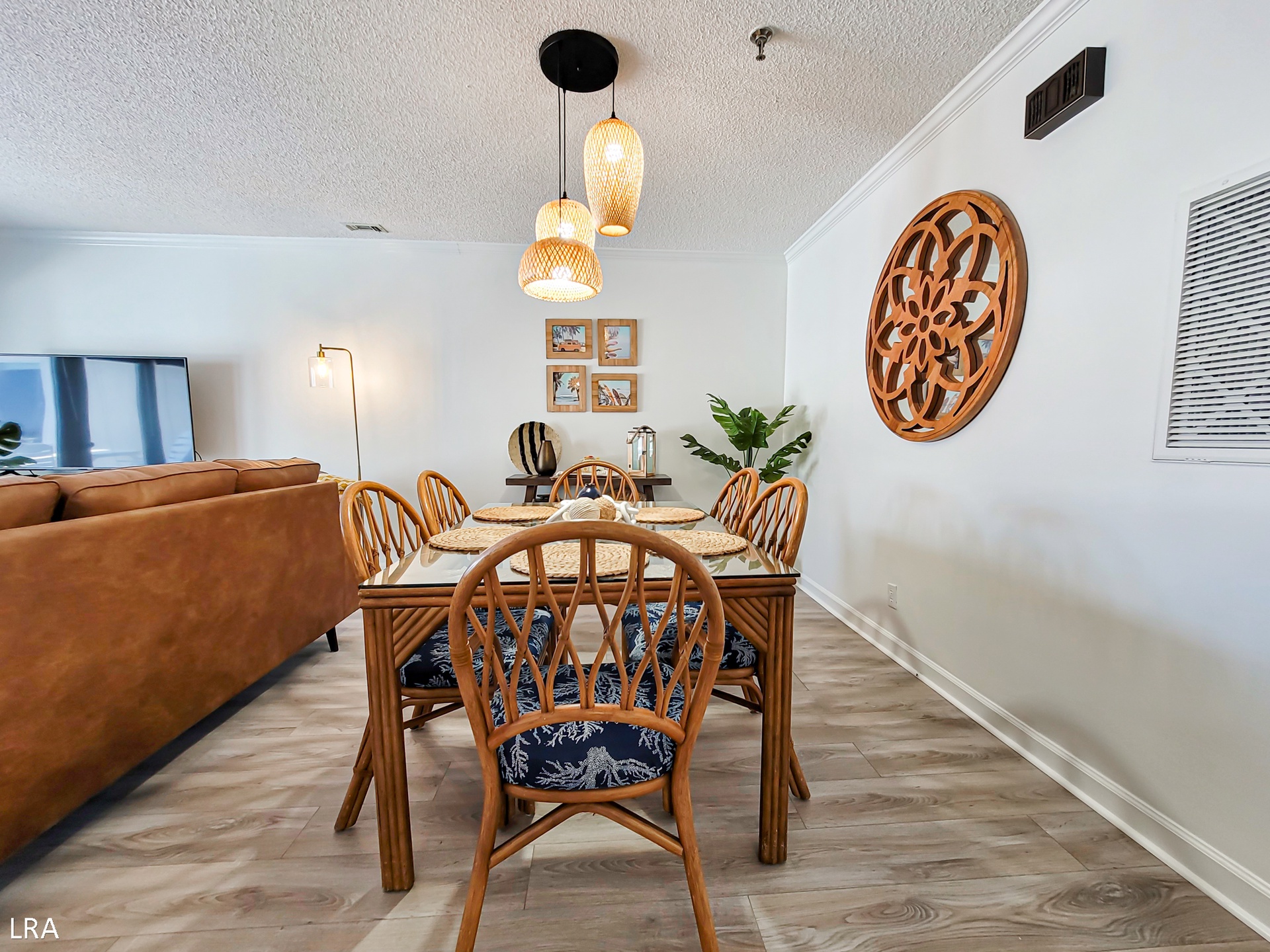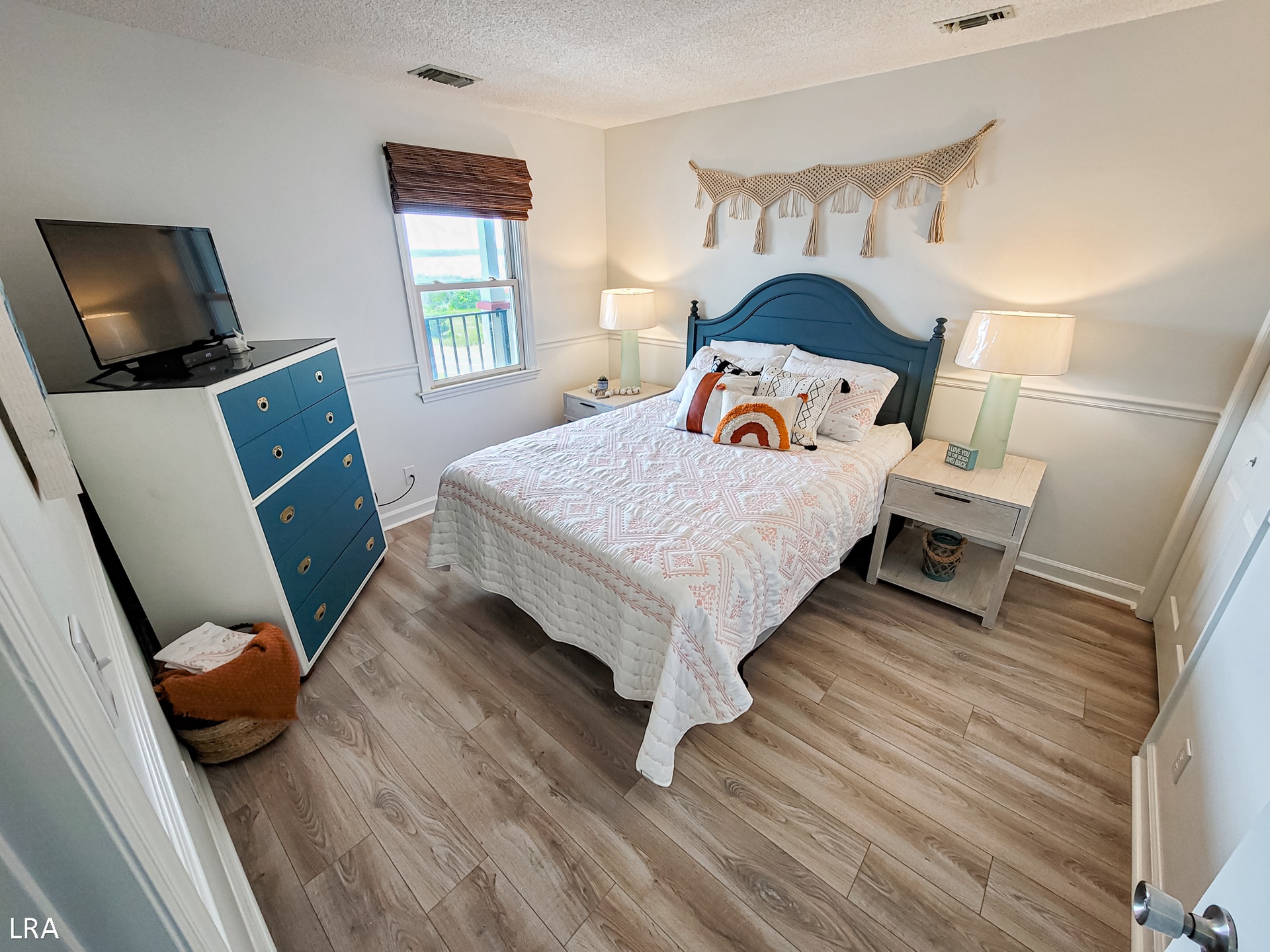 When you first arrive at the unit, use your Keyless Access code to get your vacation started! You are greeted by a foyer area that leads you to the kitchen, living room, and Master Bedroom. The spacious living area offers comfortable seating arrangements so that your group can gather together after a long day on the beach to watch a movie or catch up on your favorite shows. The large Flat Screen TV Smart offers cable service and access to streaming apps. Step out on the private deck where you can enjoy a stunning view of the courtyard and the Atlantic Ocean. Whip up amazing meals for your family in the stunning modern kitchen, which is equipped with stainless steel appliances, wooden cabinetry, a Farmhouse sink, and all of your basic cooking needs. A full-sized stackable washer and dryer are tucked away in a closet off the kitchen for your convenience. The dining area offers a large glass-top table with 6 chairs and 4 stools at the kitchen bar so everyone can enjoy their meals together.