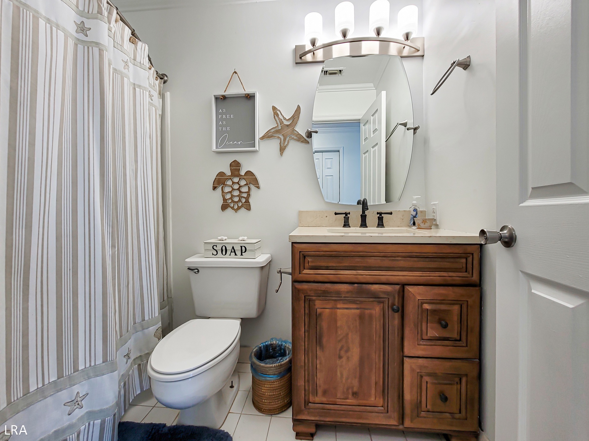 The Master Bedroom is located across from the kitchen, by the entryway, and offers a king-size bed, Flat Screen TV with cable, access to the oceanfront deck, and a private full bath with a Shower Tub combo. As you come down the hall, past the living room, you will find the 2nd bedroom, complete with 2 Twin Bunk Bed sets and a flat-screen TV with cable service. Centrally located in the hall is the second full bathroom with shower tub combo and vanity sink. Lastly, You come to the 3rd bedroom which offers a Queen size bed and Flat Screen TV with Cable service.