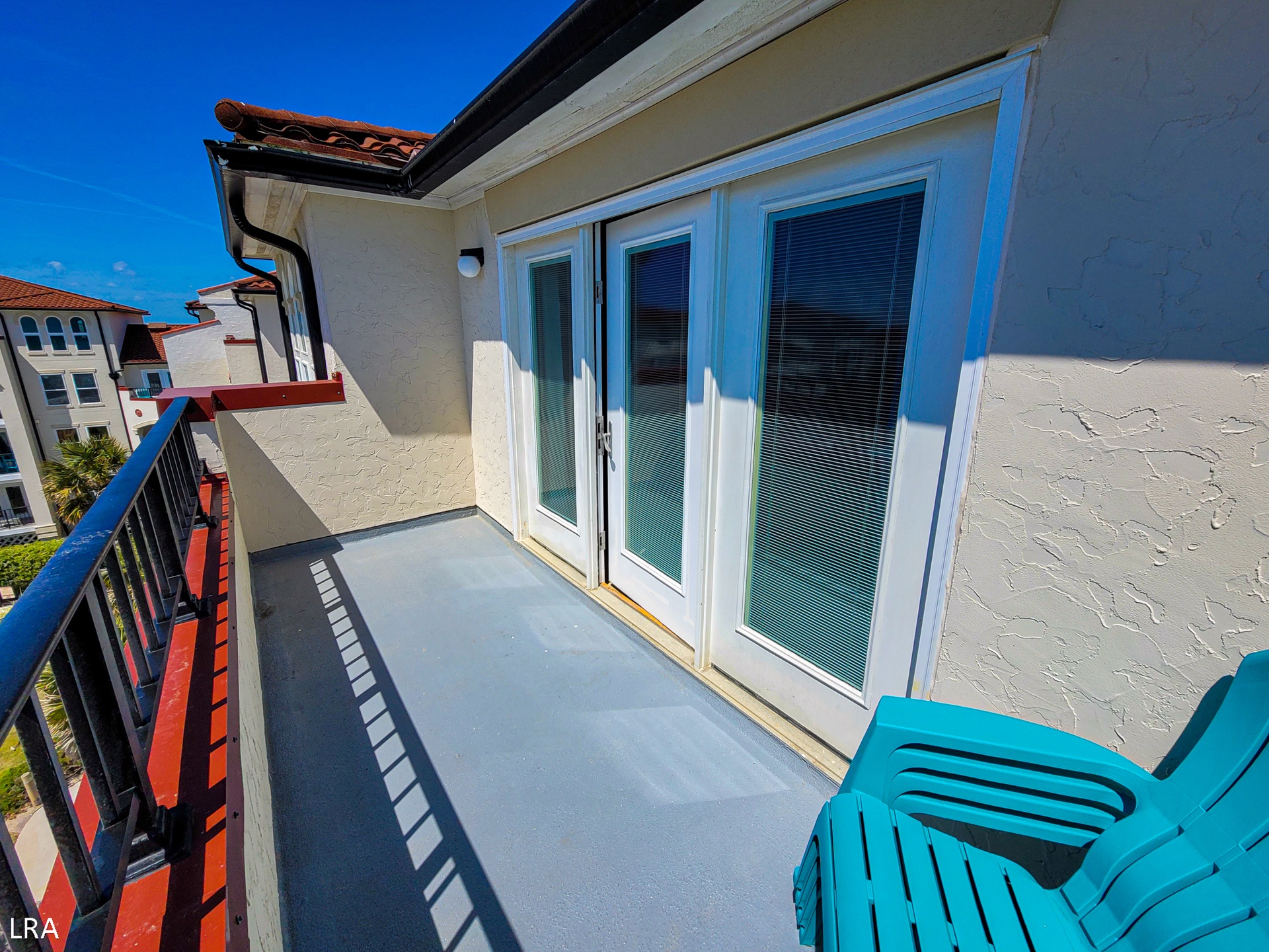 When you reach the top landing, to the right, you will find the master bedroom, complete with a wet bar and a private bath. To the left, you will find the Living room, Full Kitchen, a full bath, and the second bedroom. This unit offers a King bed and Double Sleeper Sofa in the master, a Queen bed in the second bedroom. All TVs in the unit offer cable services. A balcony with stunning views of the ocean and pool area is located off of the living room.