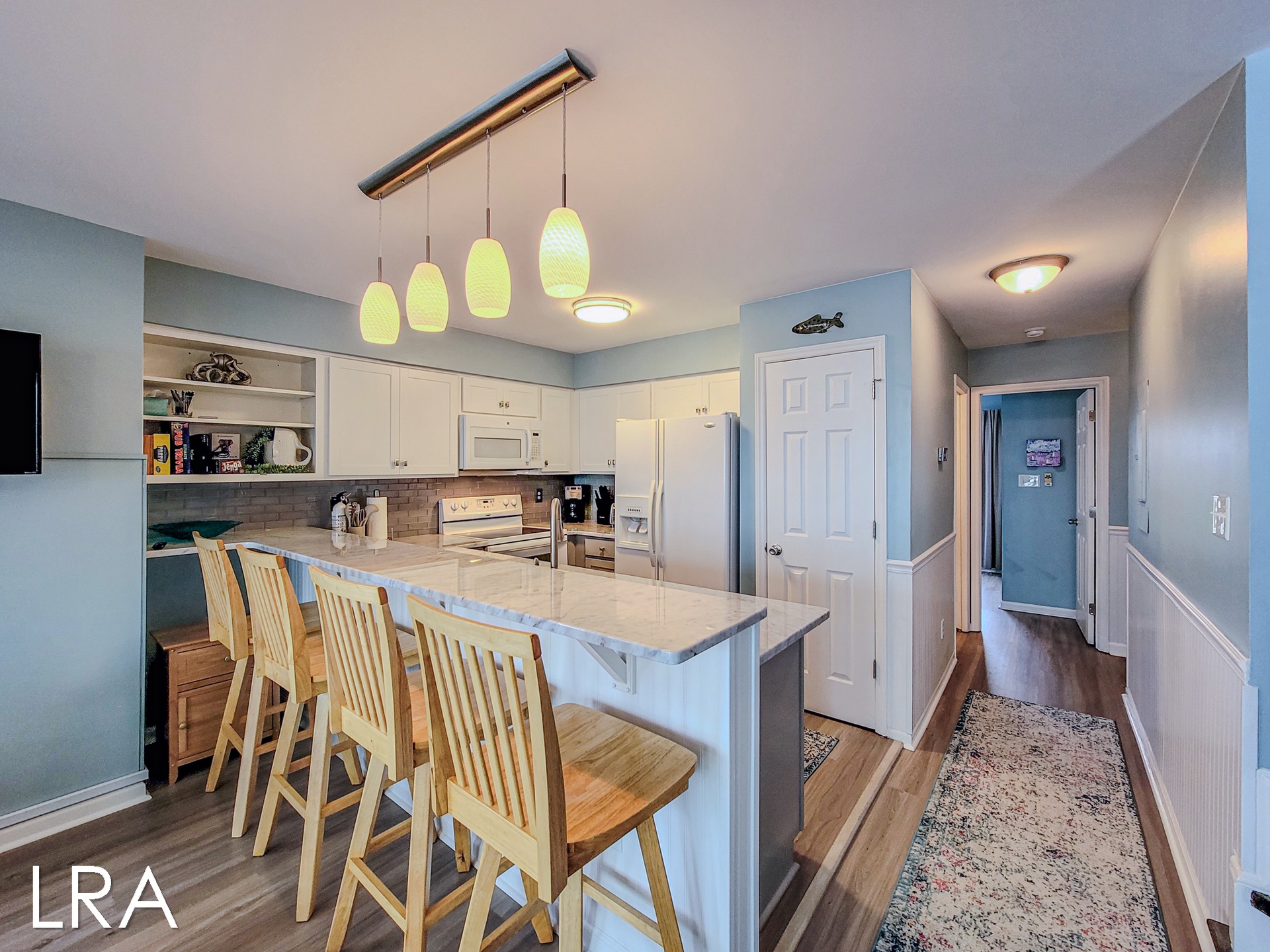 The open-concept living and dining areas are designed for relaxation and fun, providing a cozy space to kick back and enjoy each other’s company. The well-appointed kitchen makes meal prep a breeze, whether you're cooking up a feast or simply mixing up some cocktails.