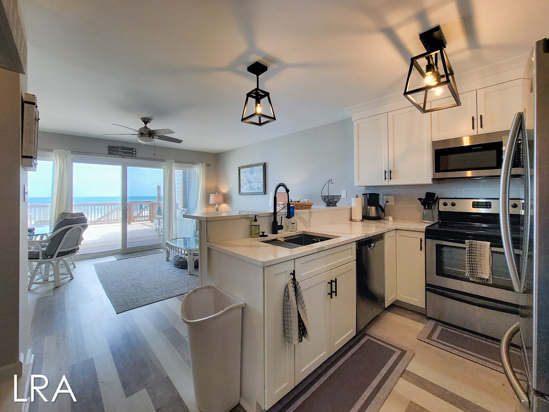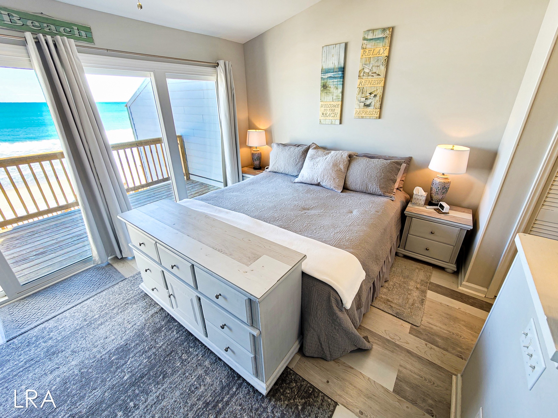 Rest easy in the comfort of the tastefully furnished bedrooms, which include a King, a Queen, a Daybed with a rollout Trundle (two Twins), and a Queen Sleeper Sofa. Pillows and blankets are provided to enhance your relaxation.