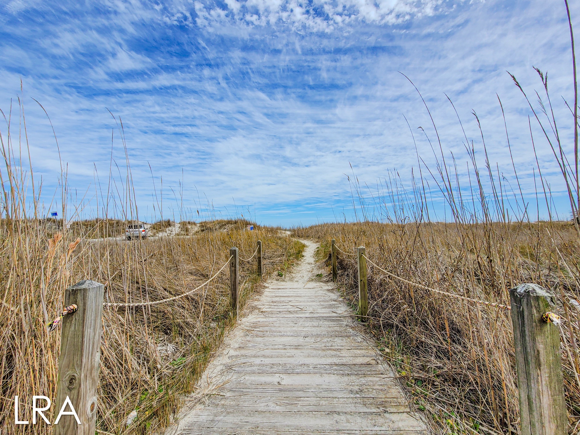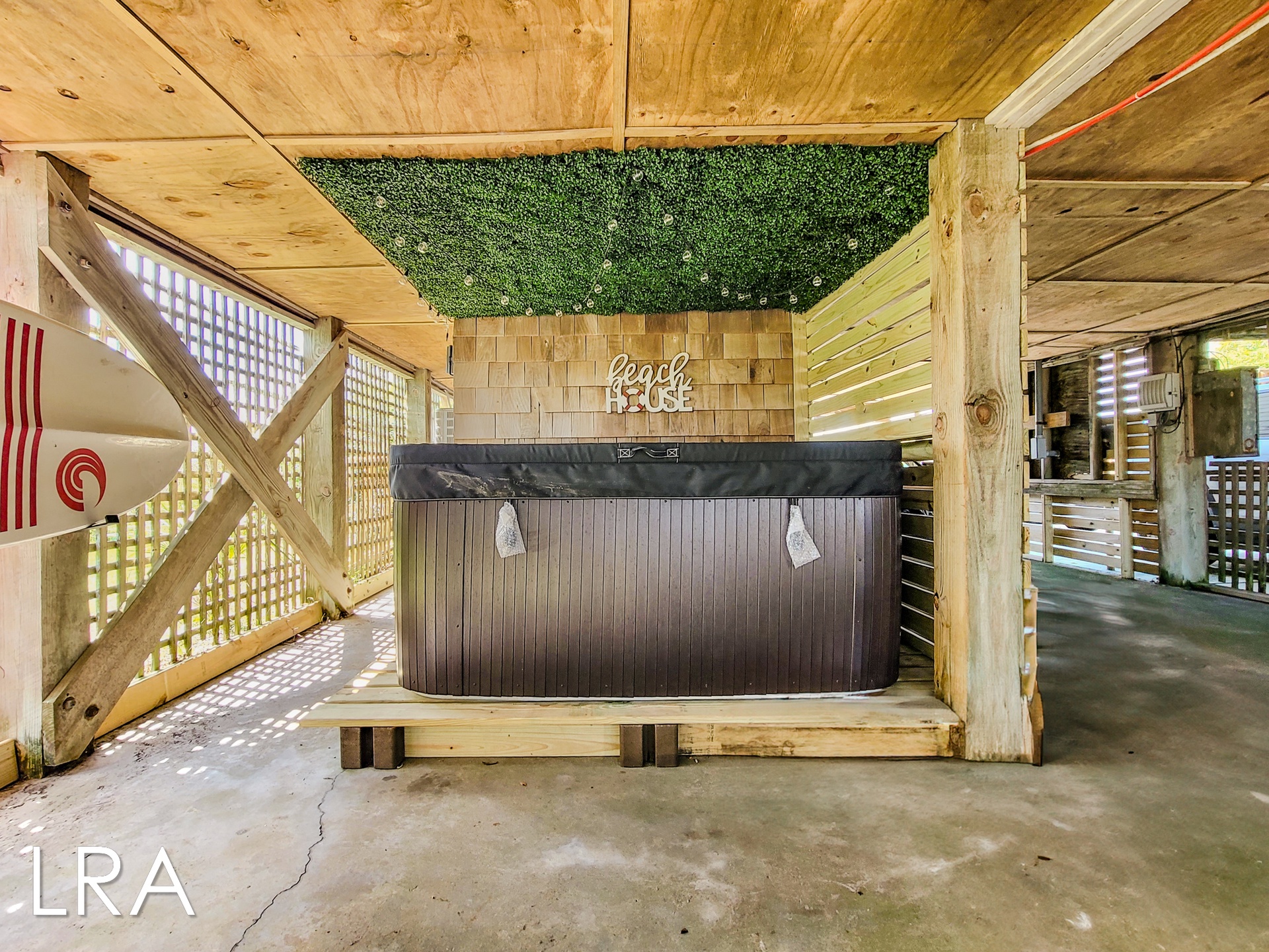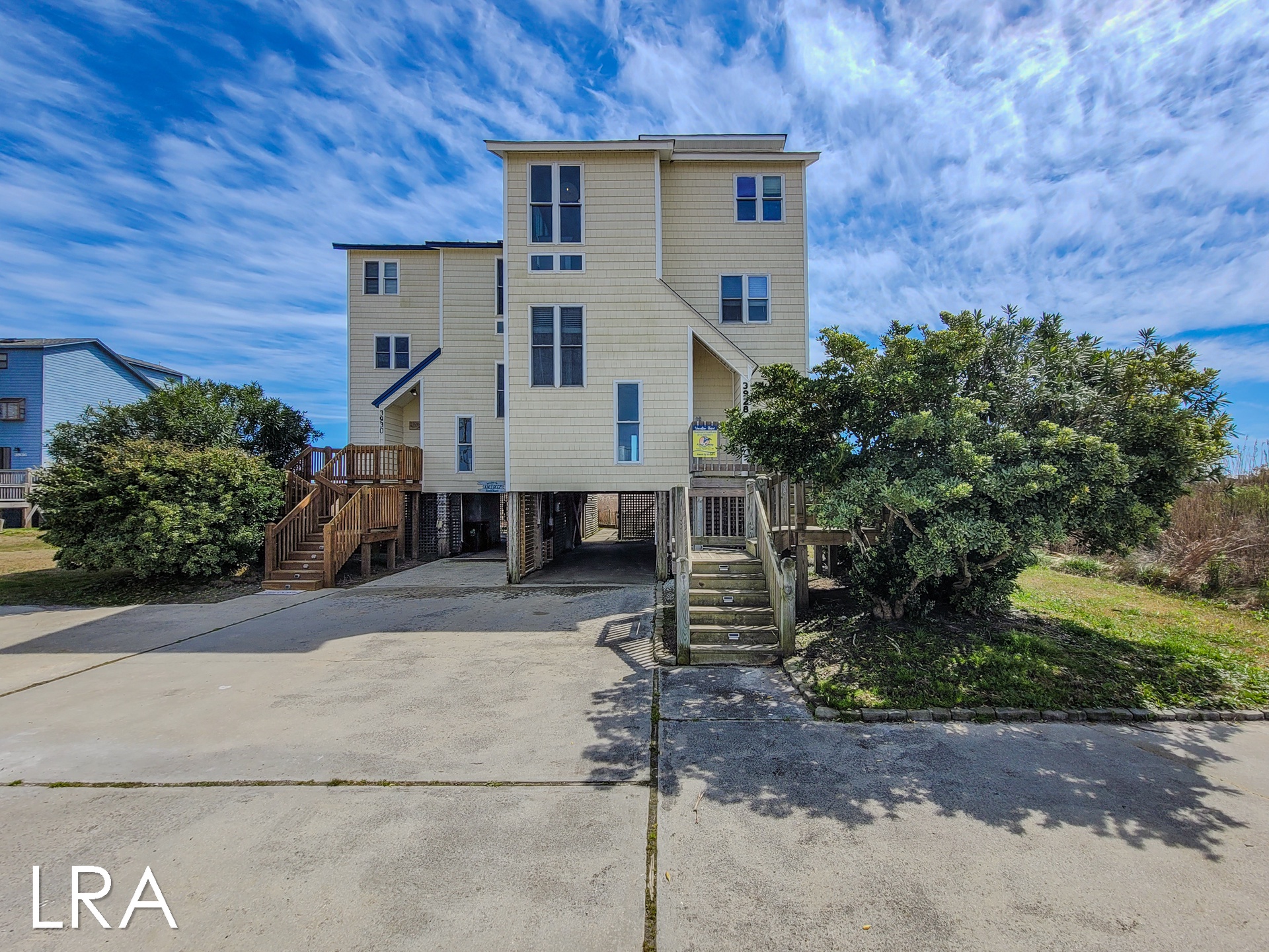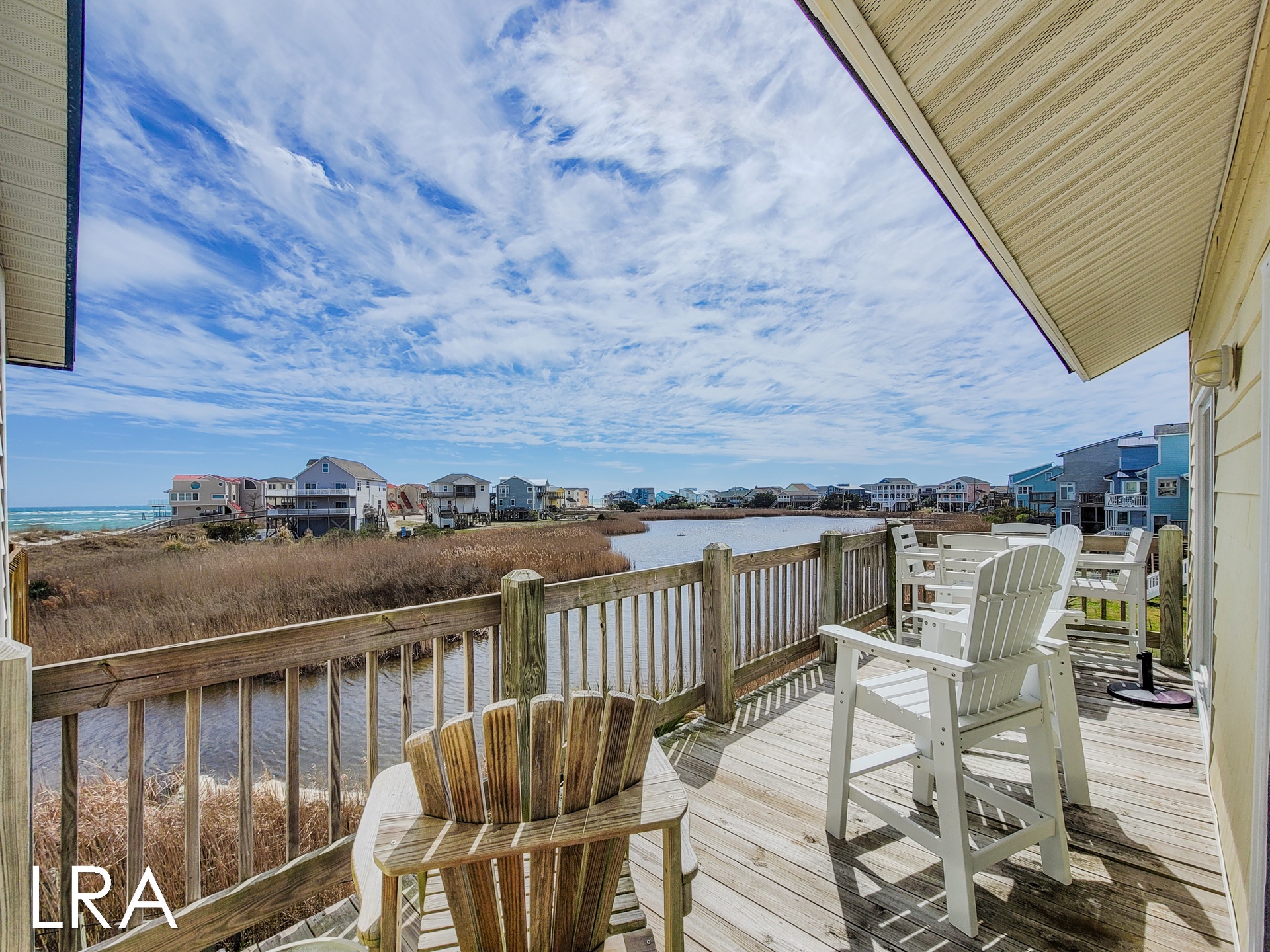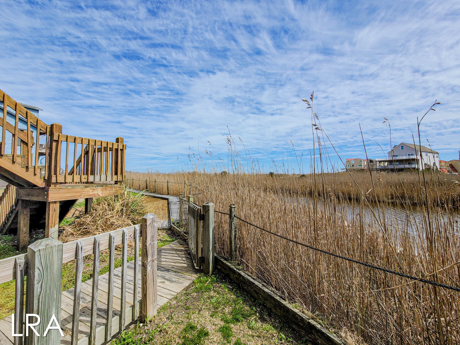 This house has an attached boardwalk that leads you directly to the beach. The boardwalk starts right behind the house.
