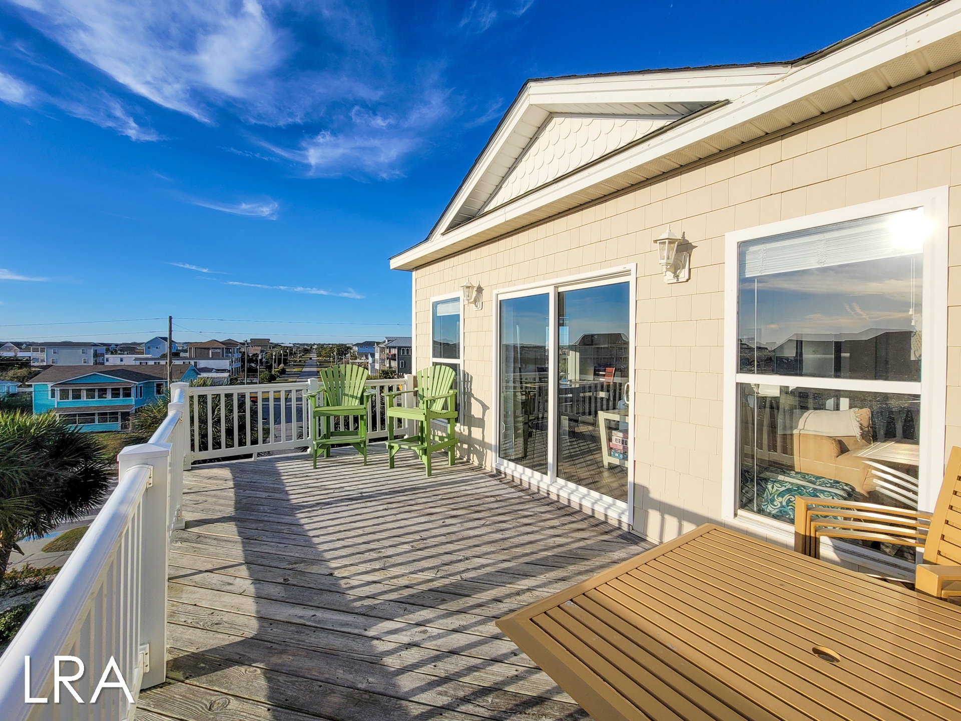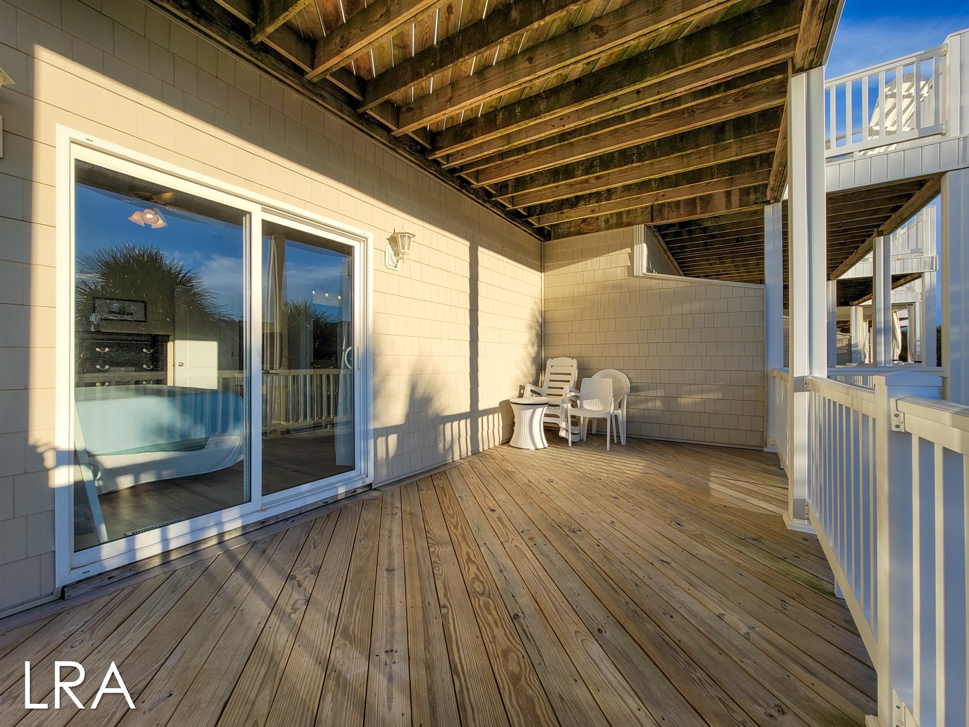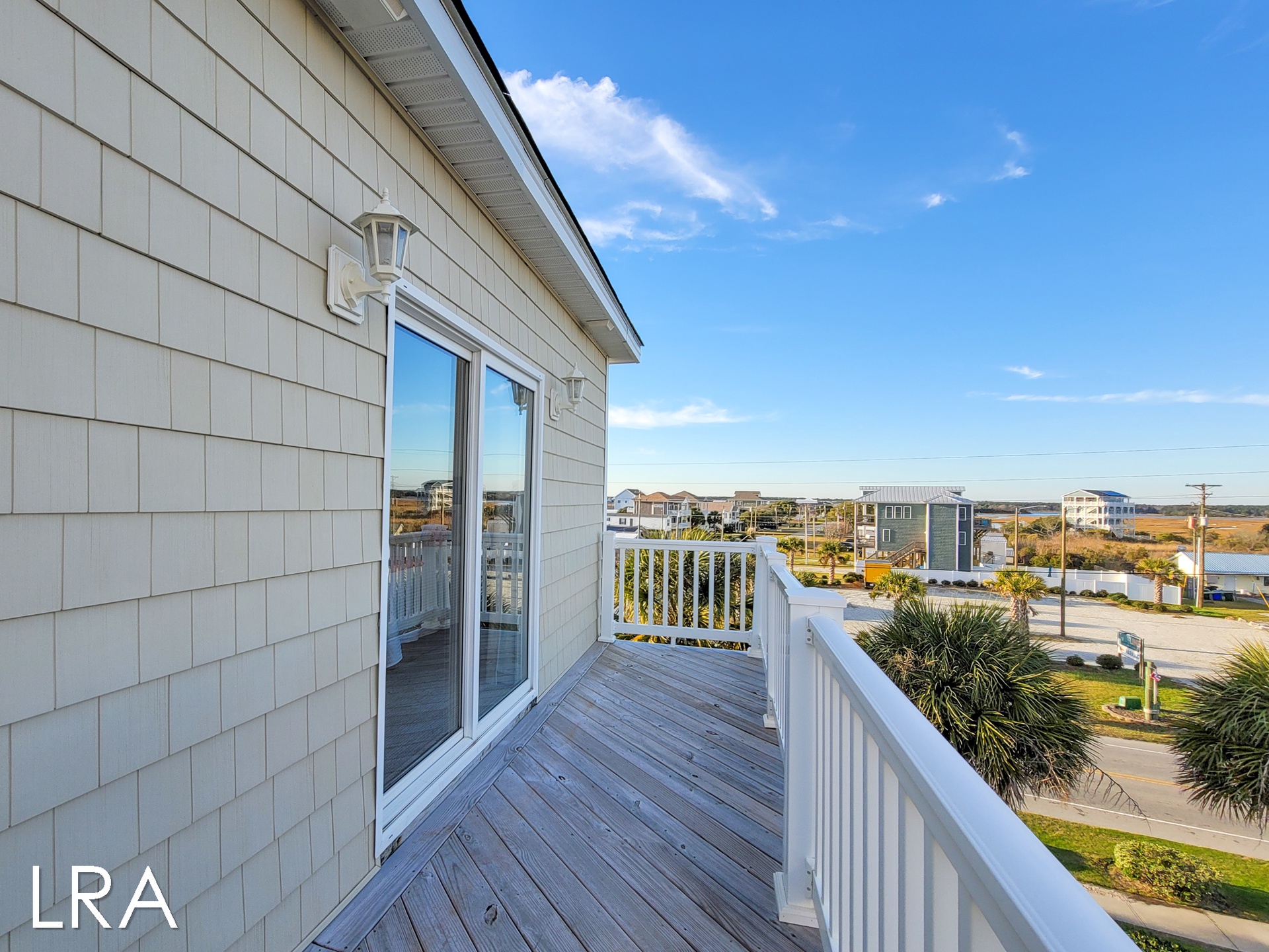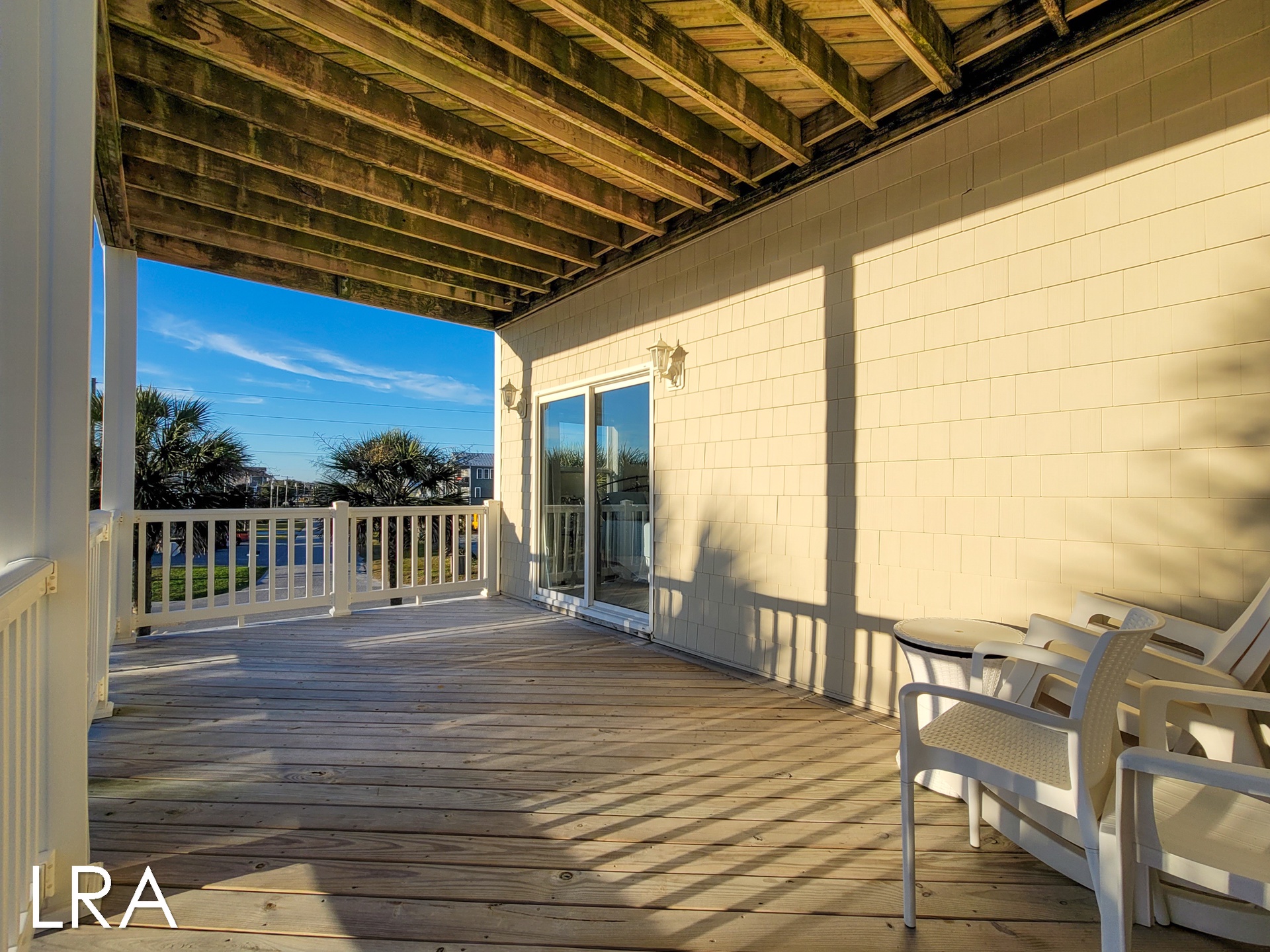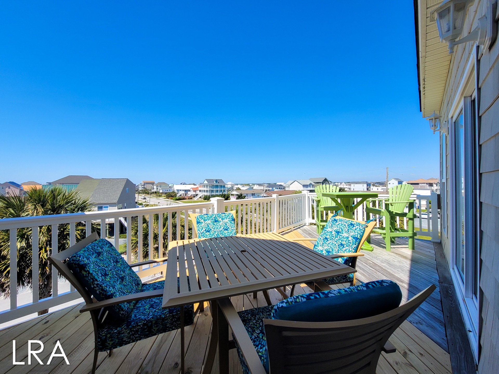Head on up the stairs to the top level of the home which is sure to please you and your family. Large picture windows and high ceilings add an open and airy feeling to the room, not to mention the views of the Atlantic as a backdrop. This level also has a deck for family gatherings to enjoy the sea breeze. The living area of the home offers a large flat-panel television, a DVD player, and wireless internet. Enjoy ample seating with a loveseat, sofa, and a recliner-type chair.