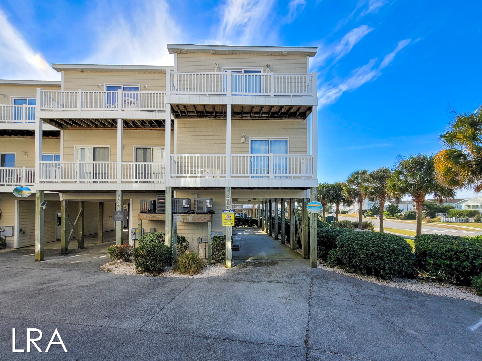 Up the stairs to the first living level of this reverse floor plan property, you will find the full-size laundry amenities neatly tucked away in the laundry closet. This level also features three of the four bedrooms this property has to offer. The first bedroom is 1 of the 2 master bedrooms complete with a large comfortable king bed, his & her closets, flat screen television, and even an ocean-side private deck to spend some time watching the waves crash with your sweetie. This bedroom also features a wonderful luxury bath complete with a luxurious full-tile shower. The 2nd bedroom on this level features a queen-sized bed along with a flat-screen television all tastefully decorated with a coastal theme. The 3rd bedroom on this level is great for the kids with its television along with a twin and double bed. The shared bath, with a tub, is located at the end of the hall so you can clean up before going out for a night on the town.