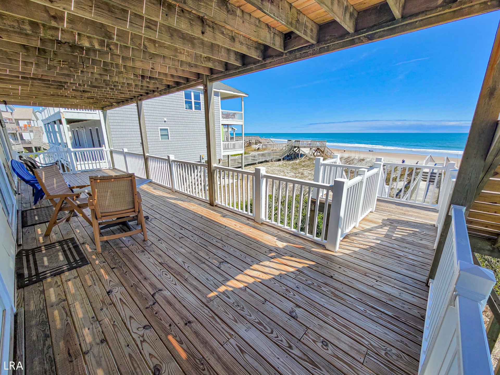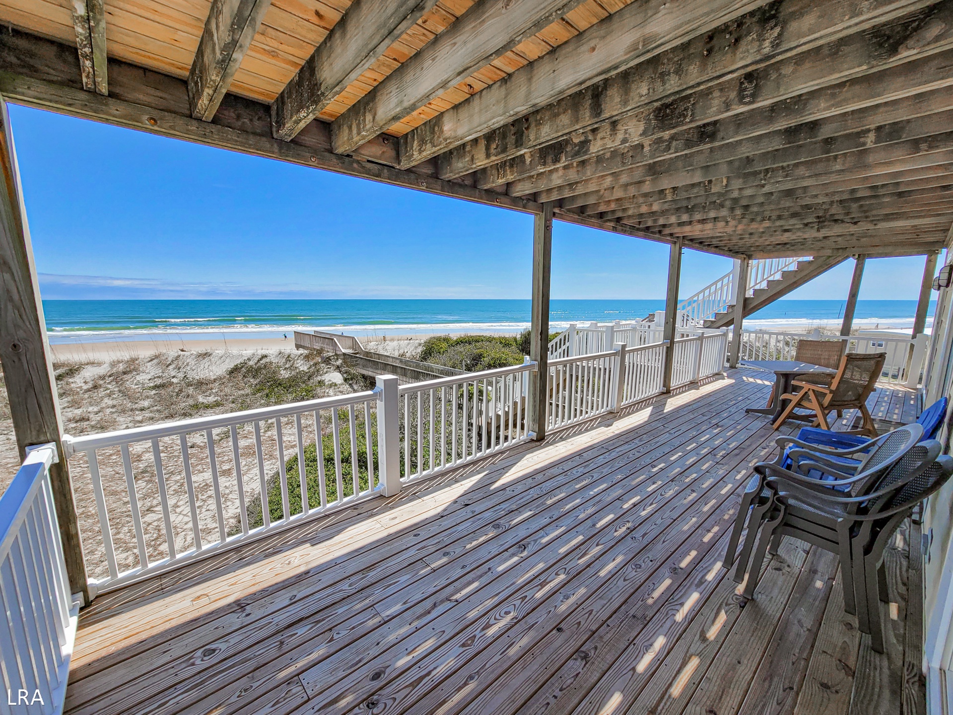 Tucked away in a peaceful neighborhood, Captain's Quarters provides a tranquil haven while remaining conveniently close to shops and restaurants, offering the best of both worlds for your coastal getaway. You'll have your own private beach access, modern amenities, and two expansive decks where you can savor the magnificent sunrise over the ocean.