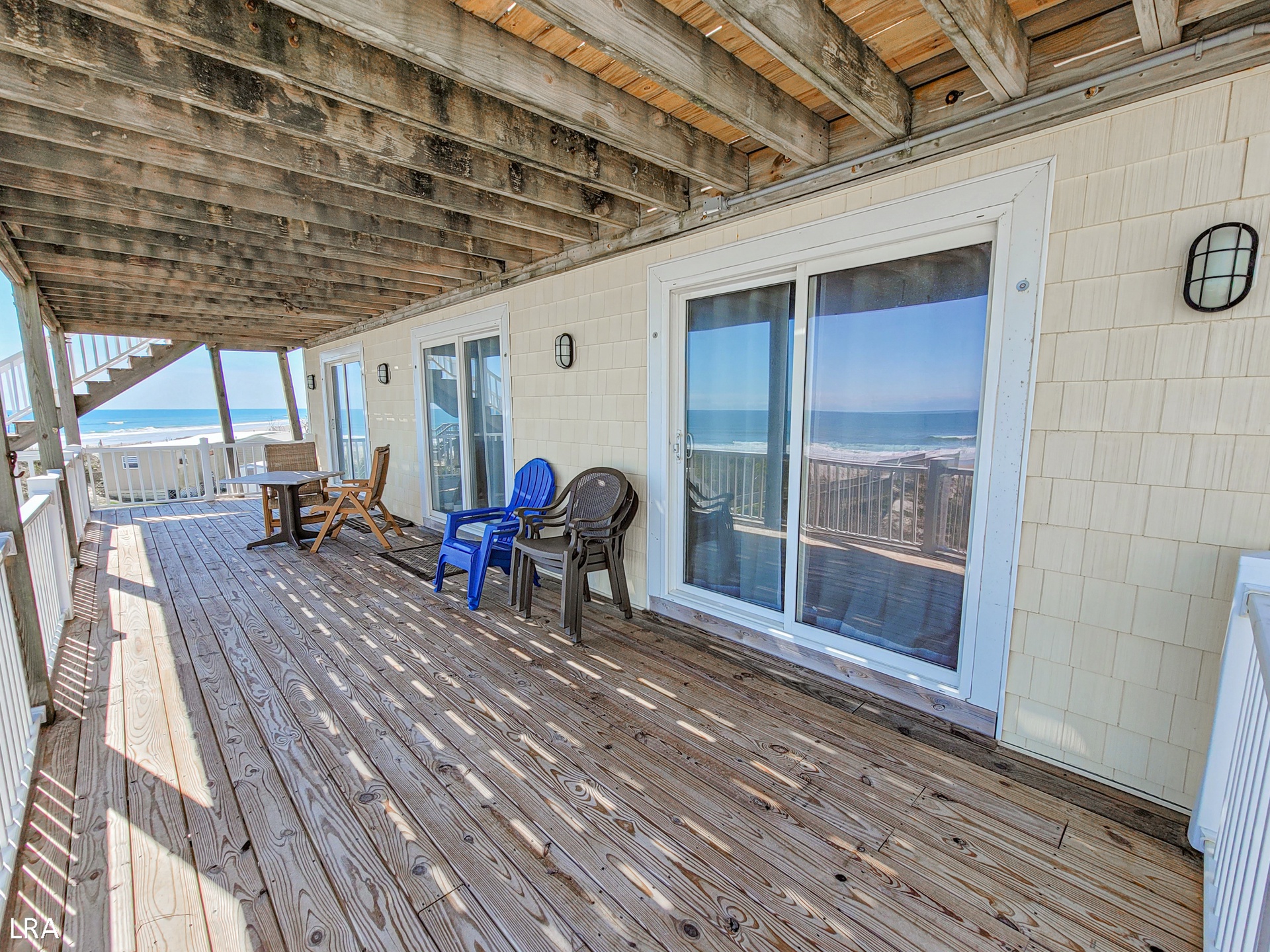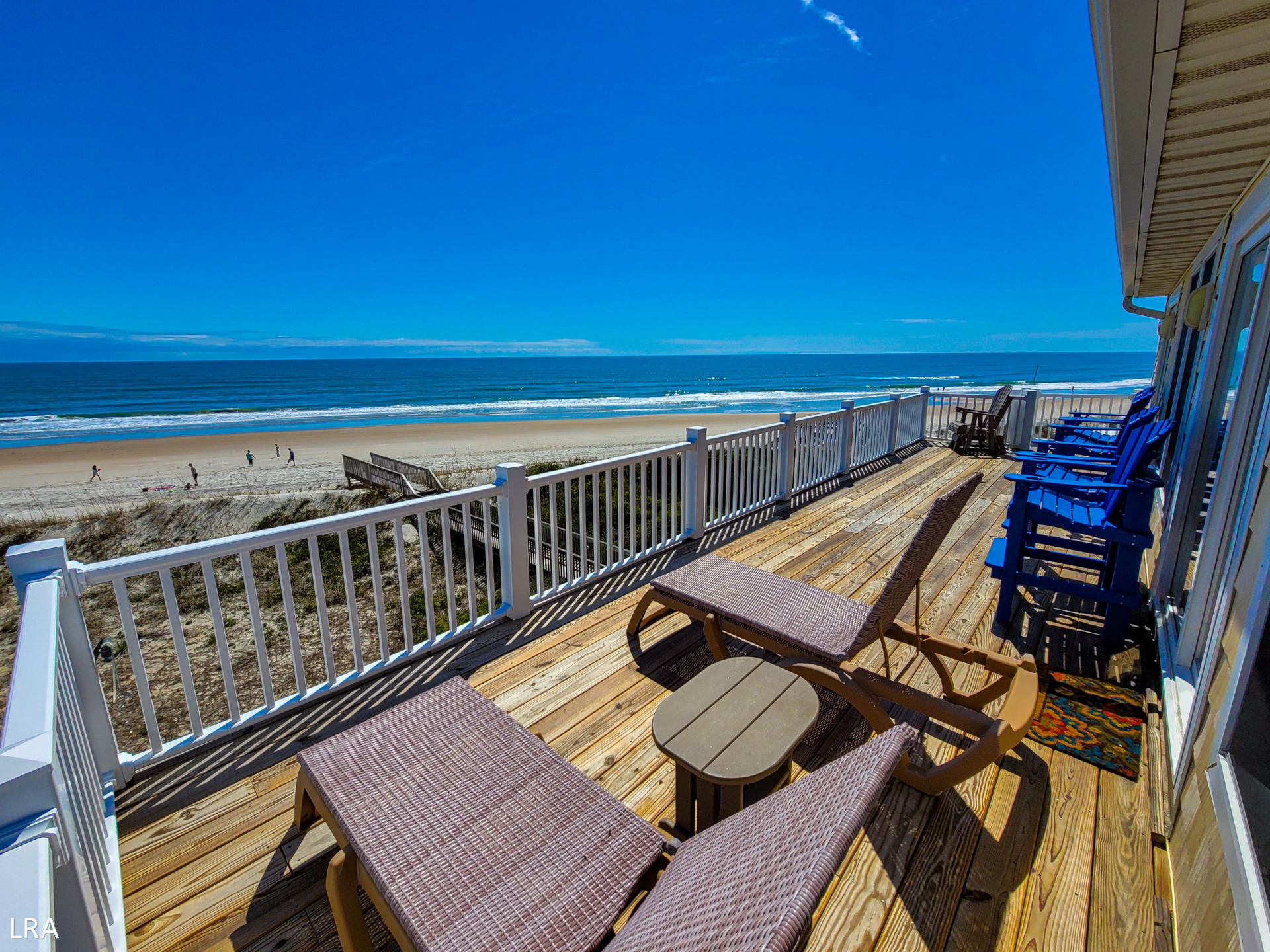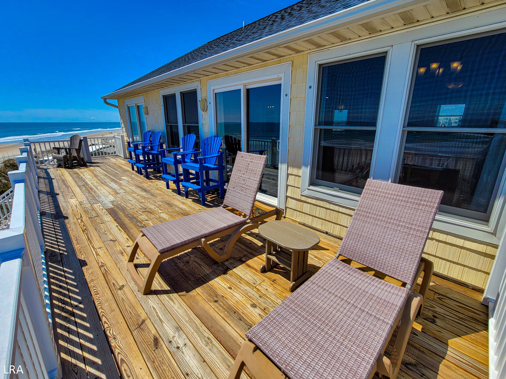 Escape to the serene and stunning beaches of Topsail Island, North Carolina, and discover the ultimate beachfront retreat at Captain's Quarters. This spacious five-bedroom oceanfront home offers unparalleled views of the Atlantic Ocean from its decks, bedrooms, and main living area. With nine windows adorning the oceanfront wall, you'll fully immerse yourself in the breathtaking ocean panorama.