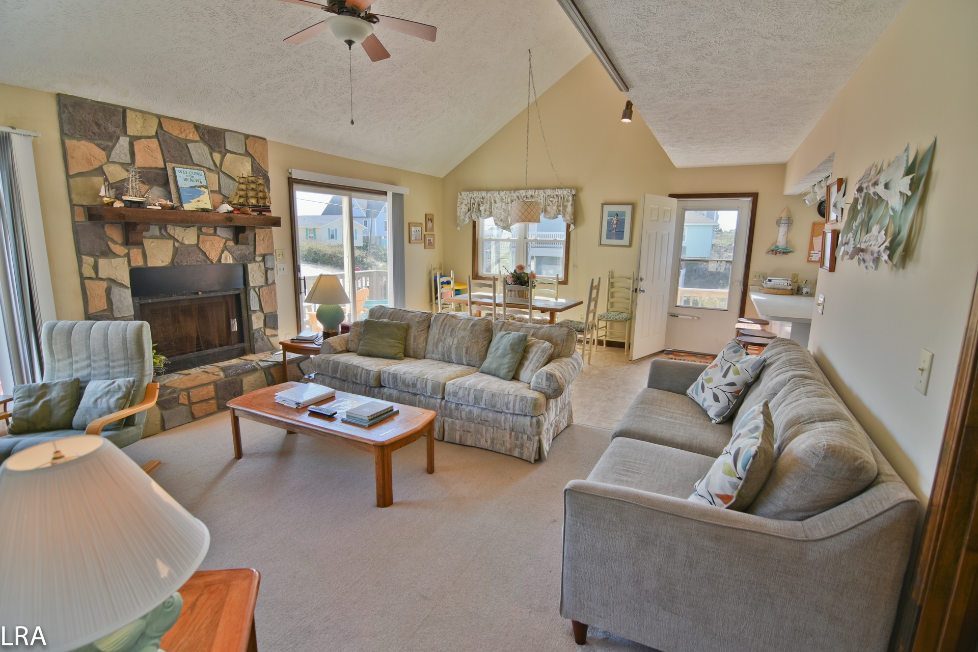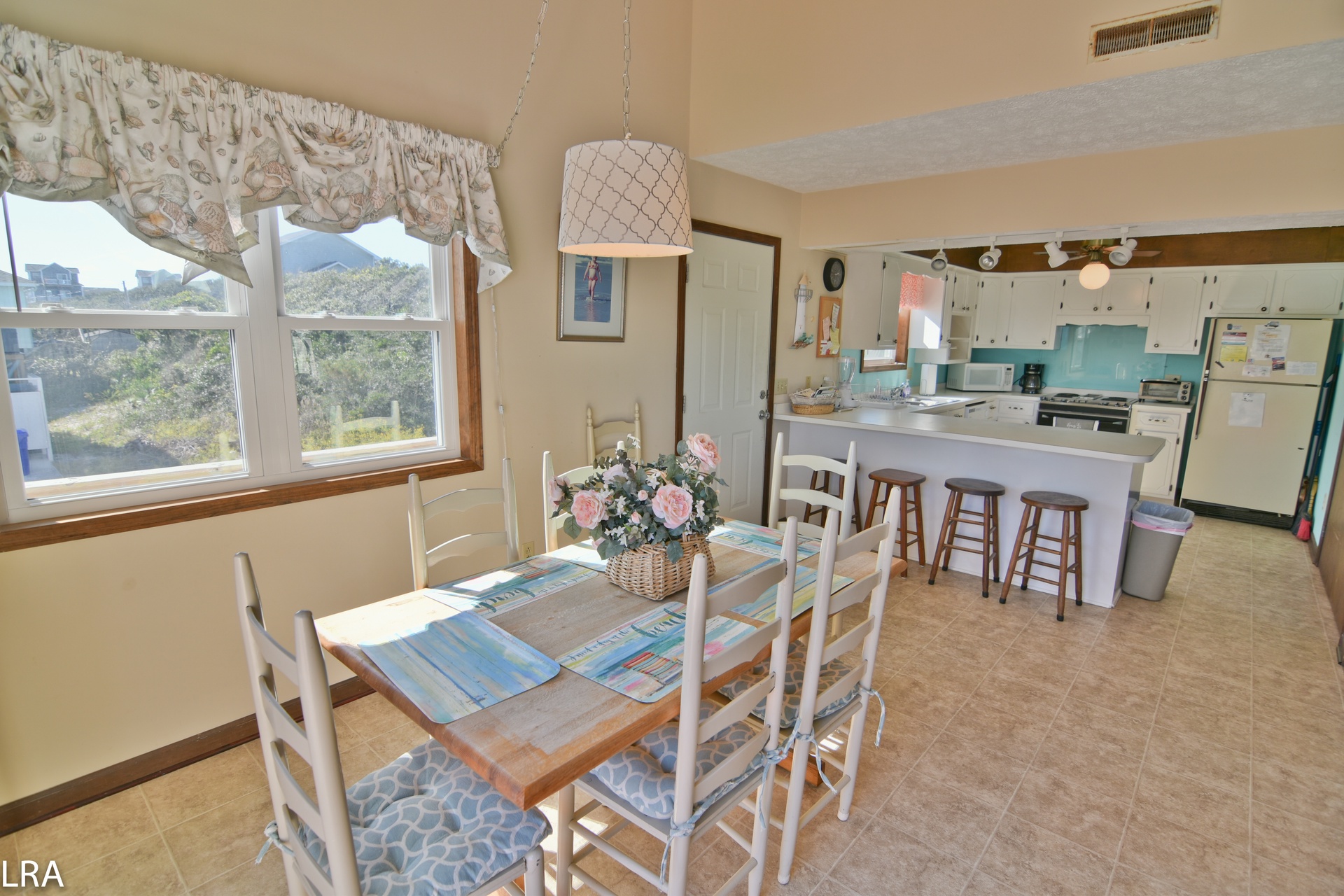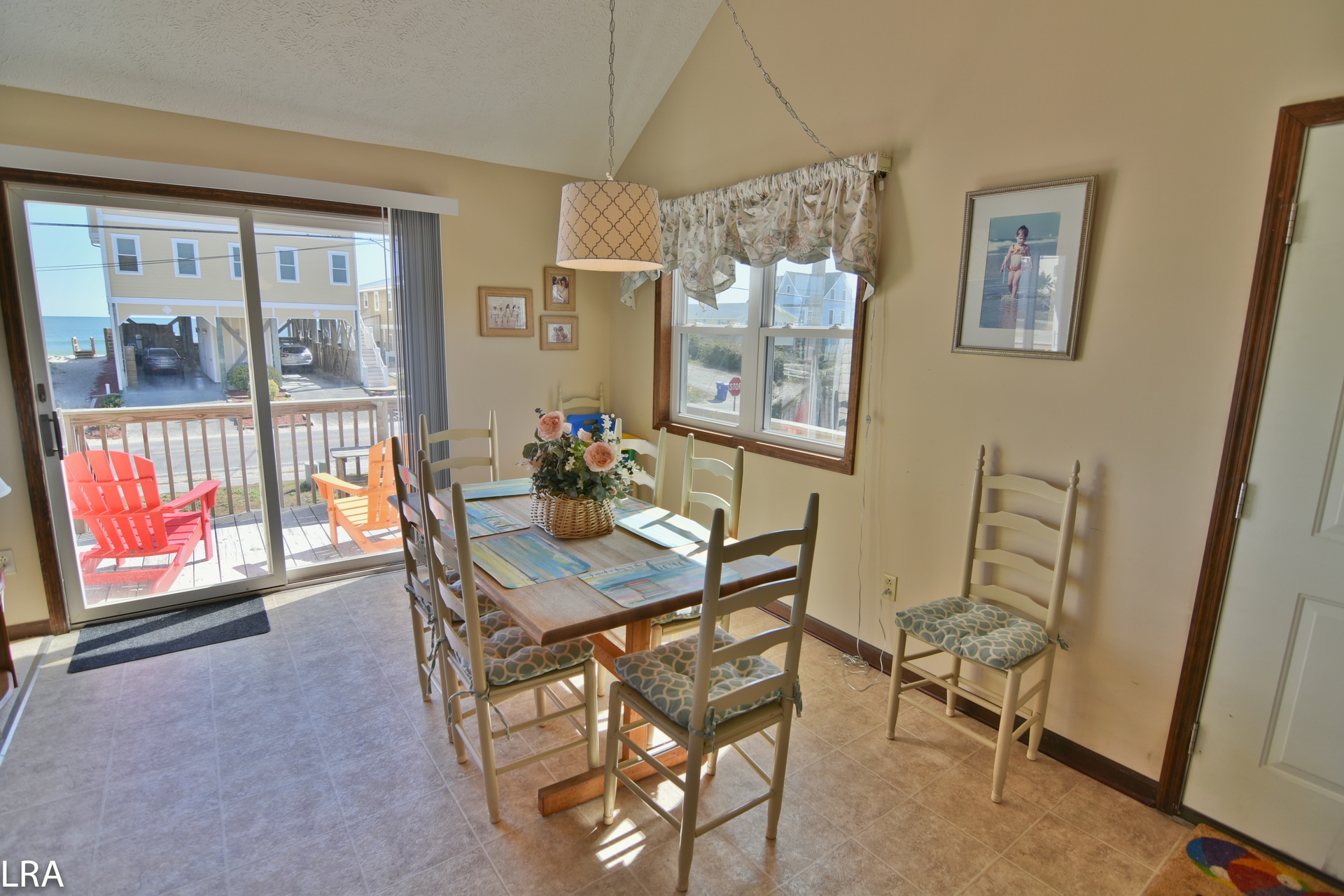 From the moment you step foot into Daughtry, you'll sense the warmth of a familiar embrace. With all the comforts of home, you'll feel like part of the family. The kitchen greets you with brightness and openness, complete with breakfast seating at the counter. To your left, the inviting dining area beckons, situated in front of sliding glass doors that offer breathtaking views of the majestic Atlantic Ocean.