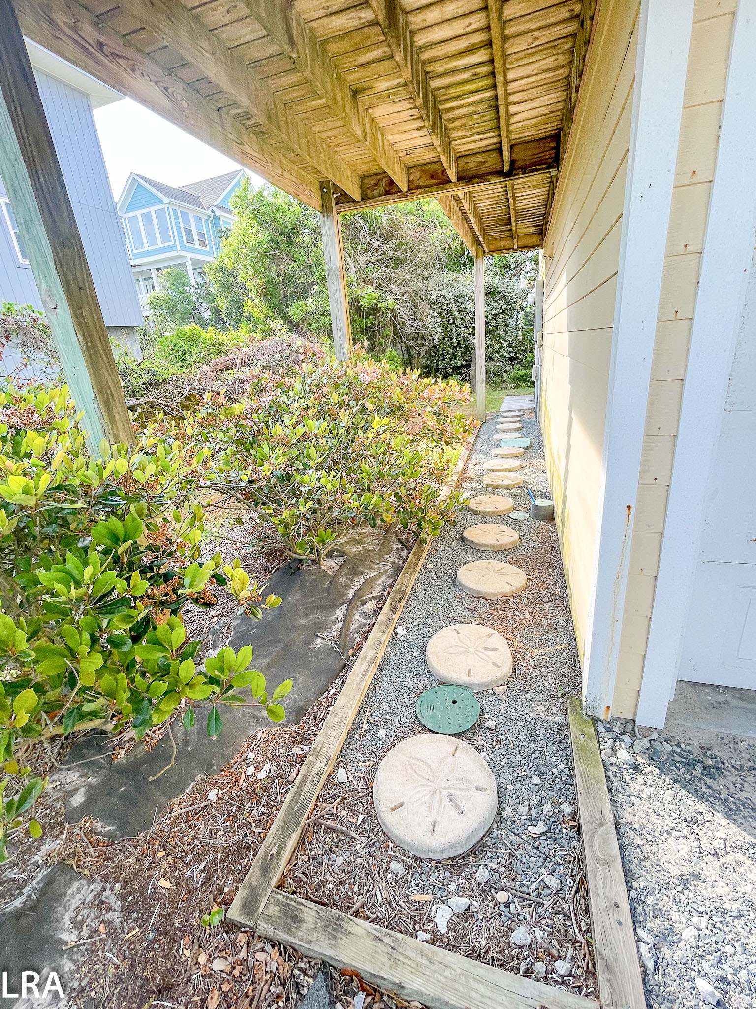 The living area offers a large television with Cable, DVD/VCR Combo, and wireless internet. The seating is sure to be plenty for the family with a sofa, loveseat, and single chair. You also have access to the front uncovered deck on this level so you can sunbathe among the beautiful views. This level also offers a "convenient" full bath that services the family room or the 4th bedroom on this level. The 4th bedroom offers a Queen bed along with a coastal theme appeal. Downstairs you will find the convenience of a private hot and cold outside shower at the rear of the home. Beach access is right across the street for those who want to fiddle around.