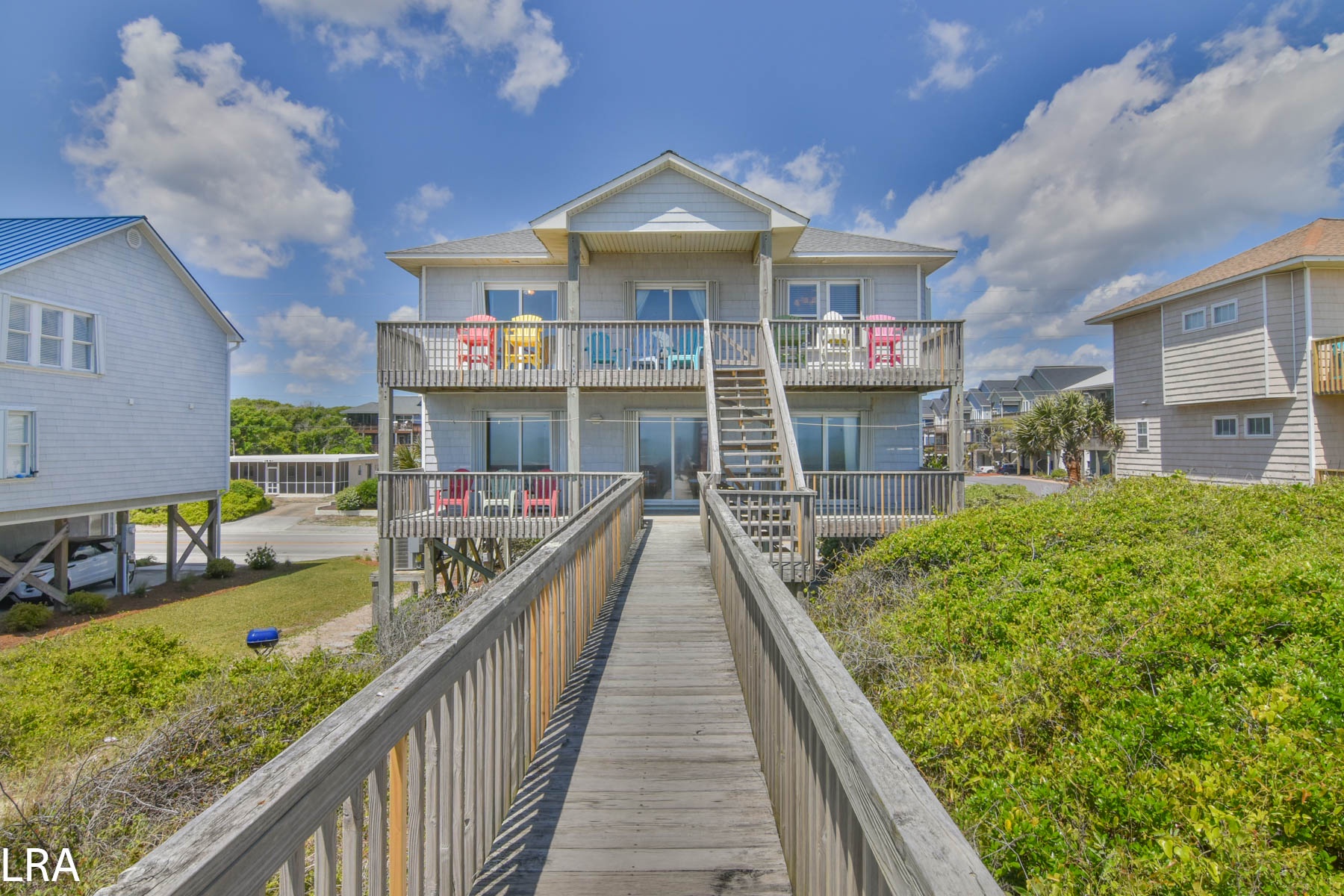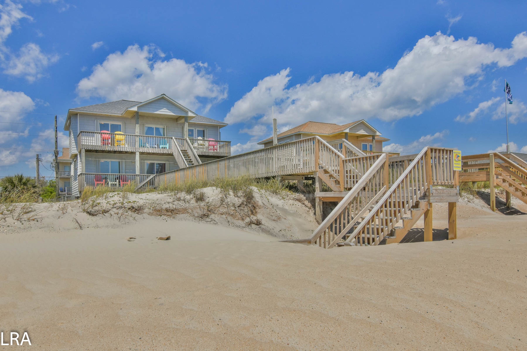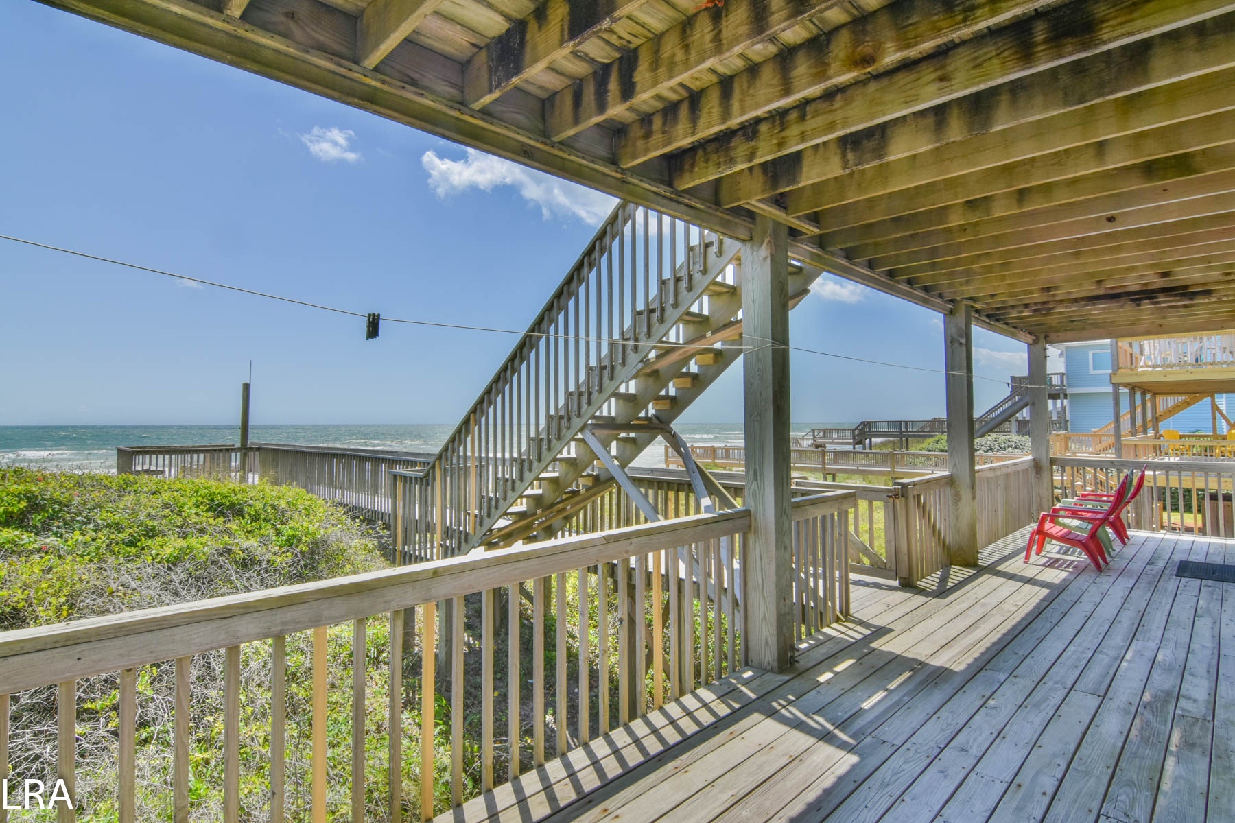 This large beach property is in a great location in Surf City. Fins To The Right is an oceanfront cottage with covered oceanfront decks and direct access to the beach. A reverse living floor plan capitalizes on the views of the ocean as you relax in the living area, chow down on some freshly cooked shrimp at the dining table, or prepare gourmet meals in the kitchen. Shopping and dining is just a short drive back to the commercial area of Surf City. Cable TV in all bedrooms and wireless internet is provided for your convenience. The outdoor shower has cold water only and is not enclosed.