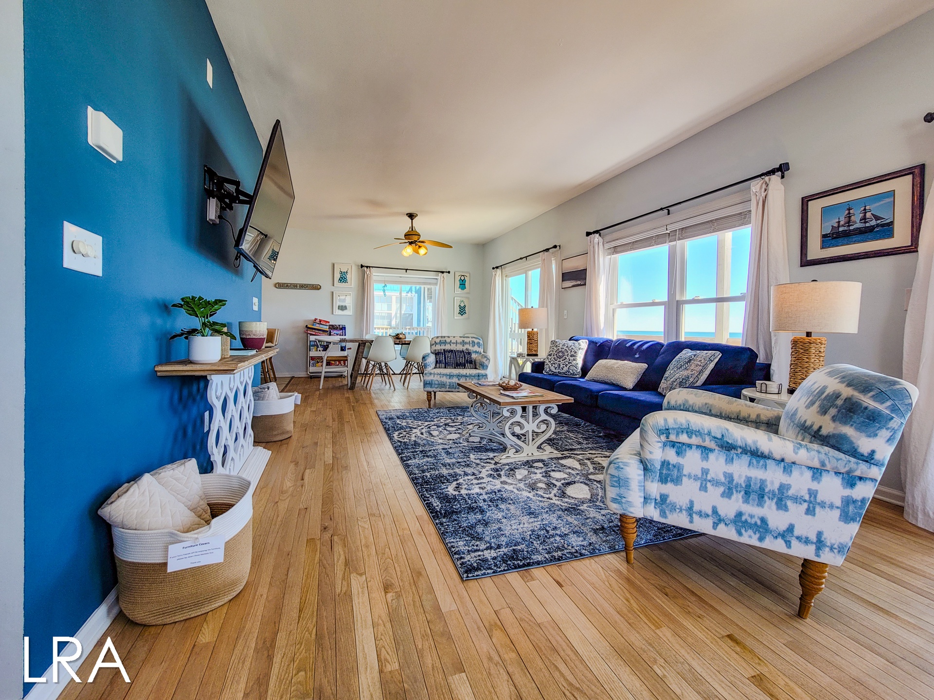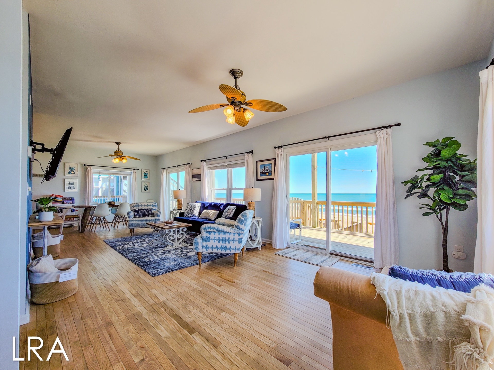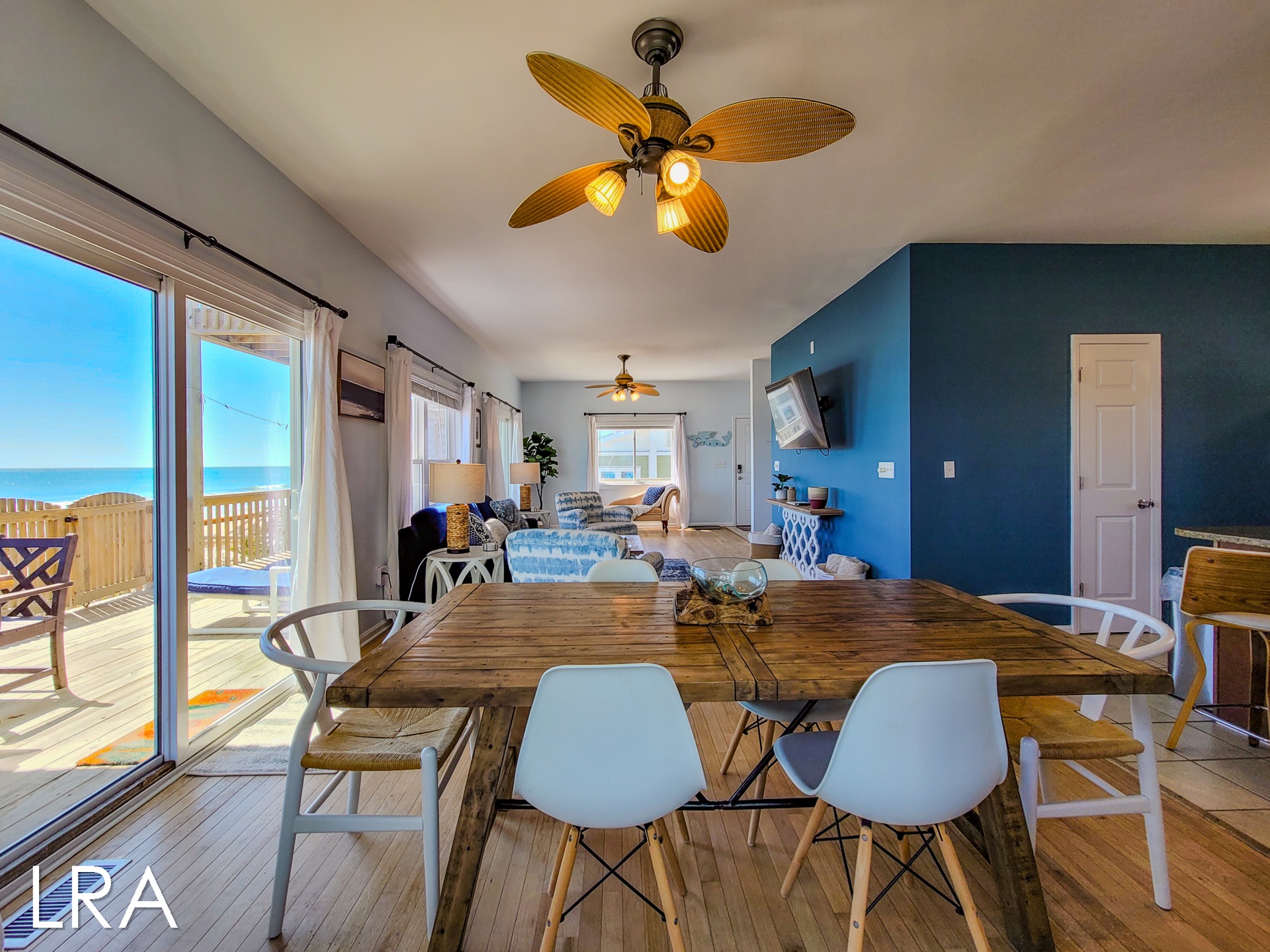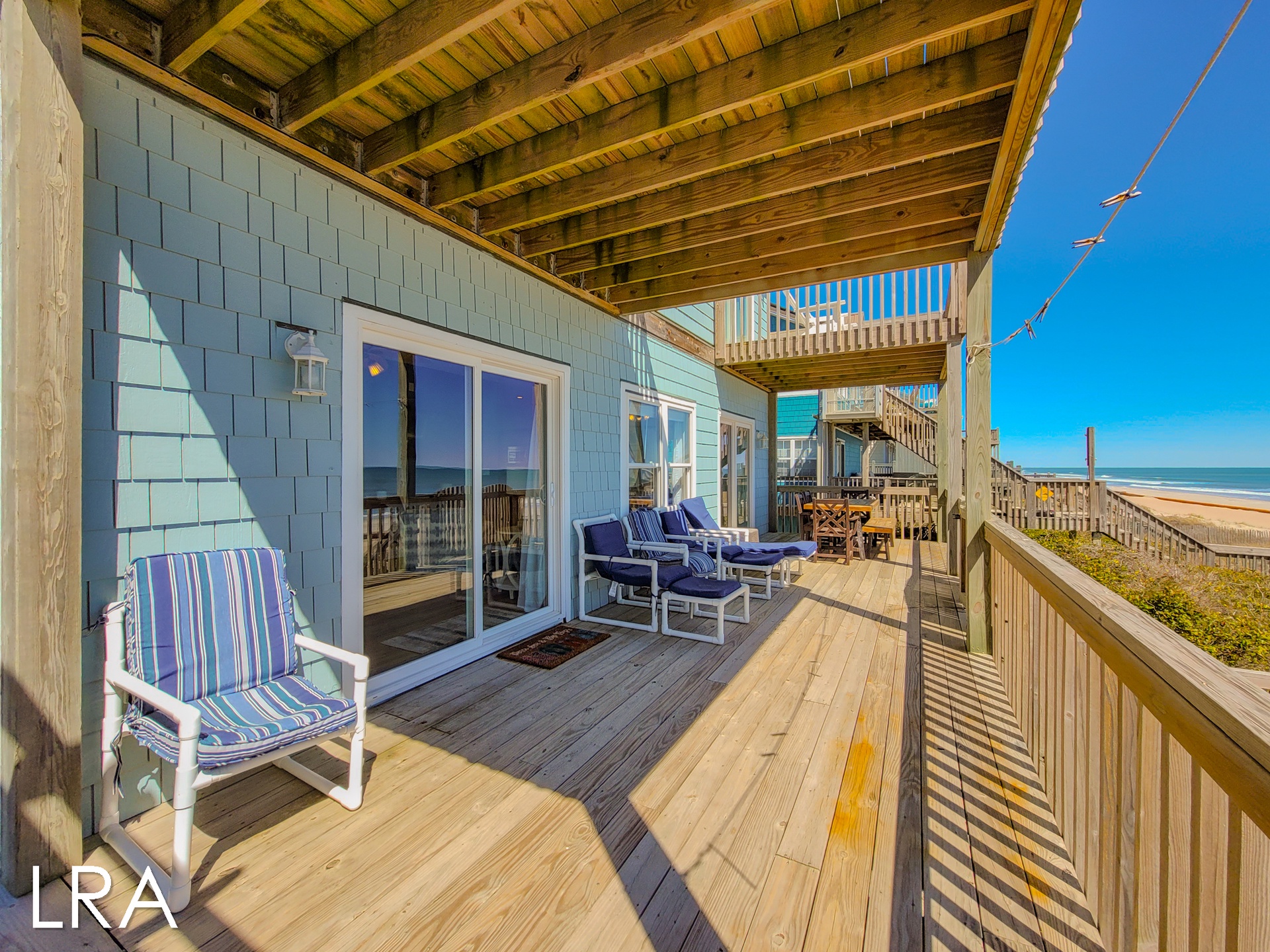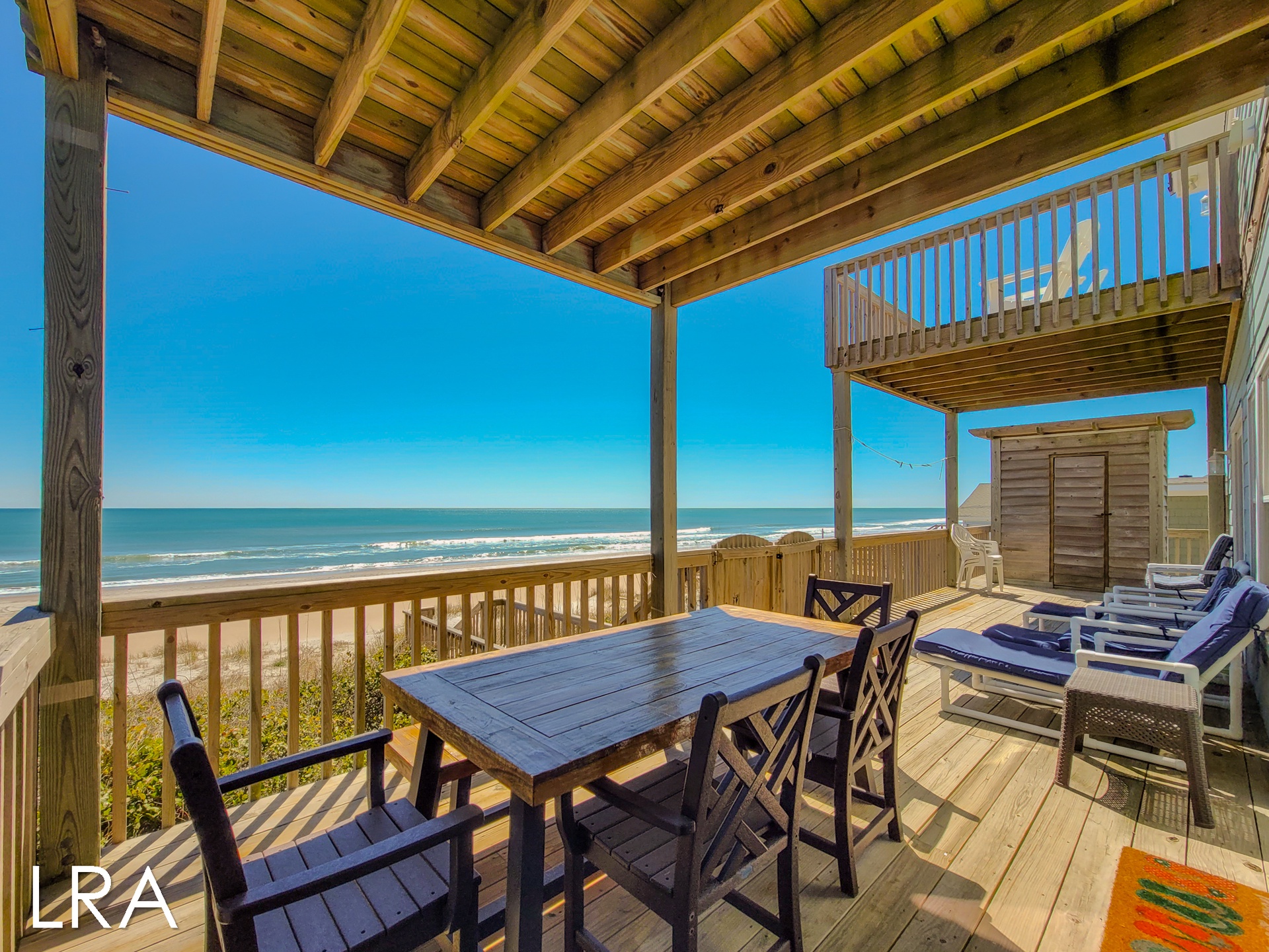 For your convenience, this beachfront retreat boasts a two-car garage, providing ample space for your vehicles and beach gear. Moreover, direct beach access from the property ensures that the sun, surf, and sand are just steps away, allowing you to relish the coastal paradise at your leisure.