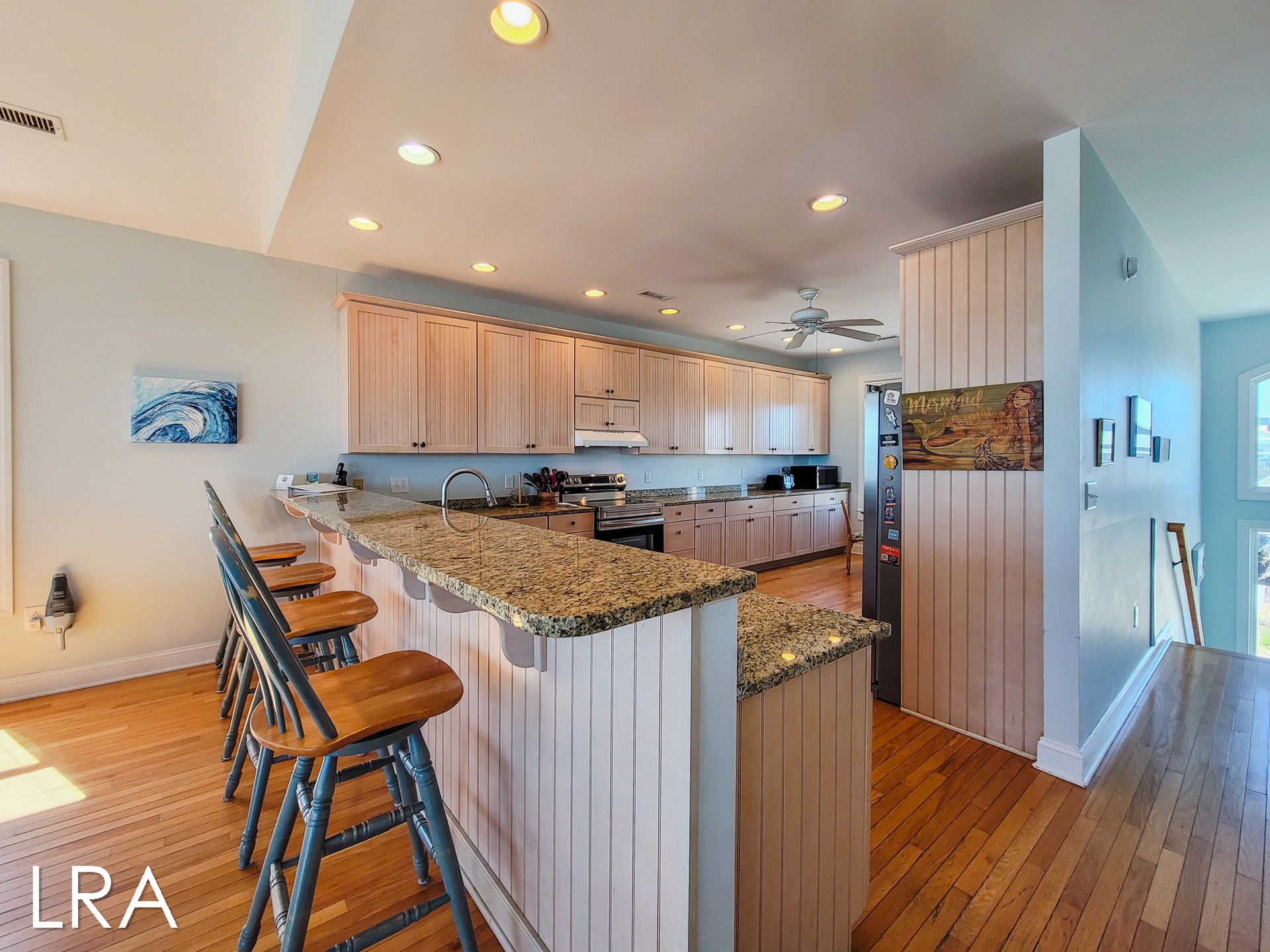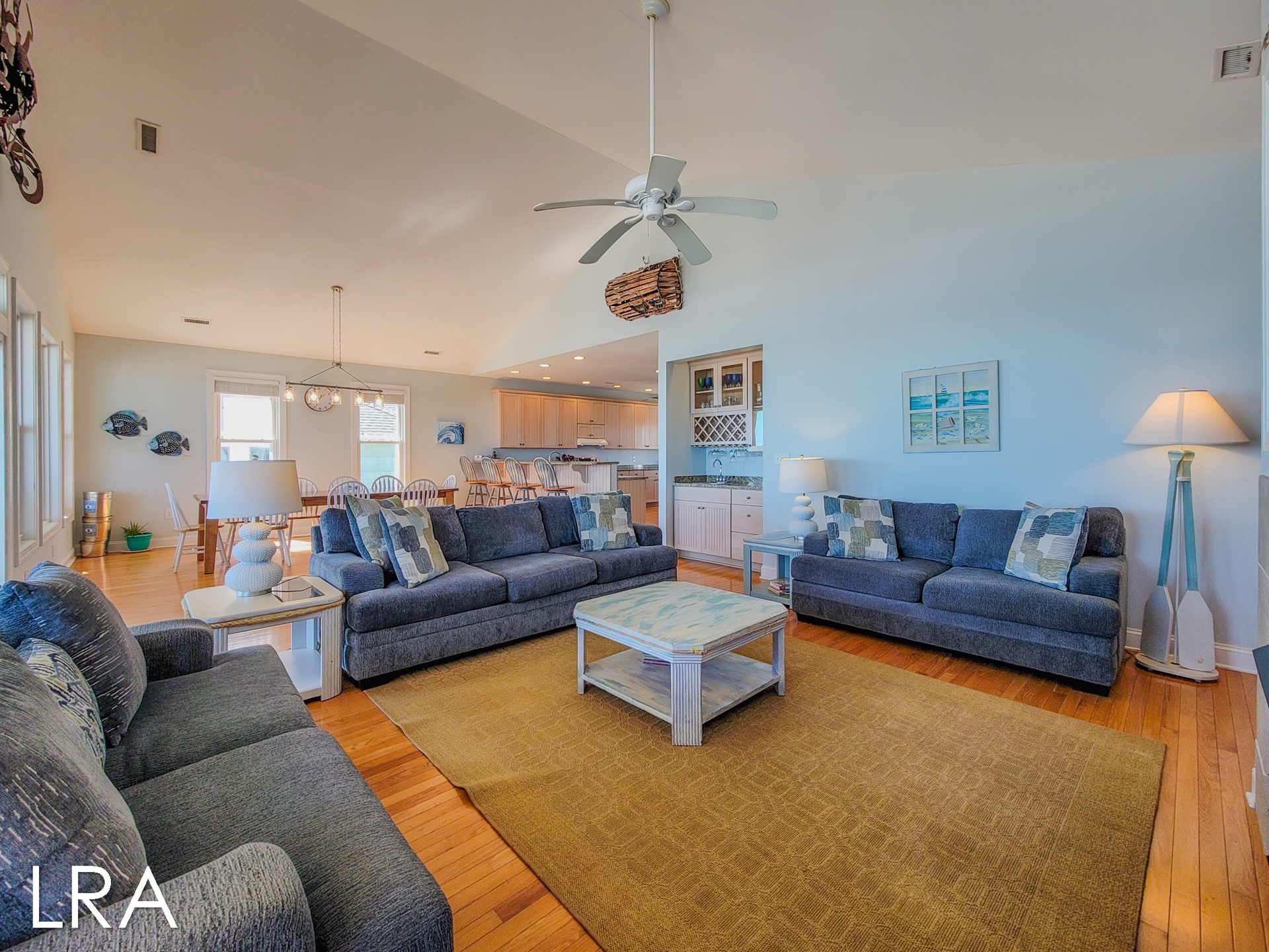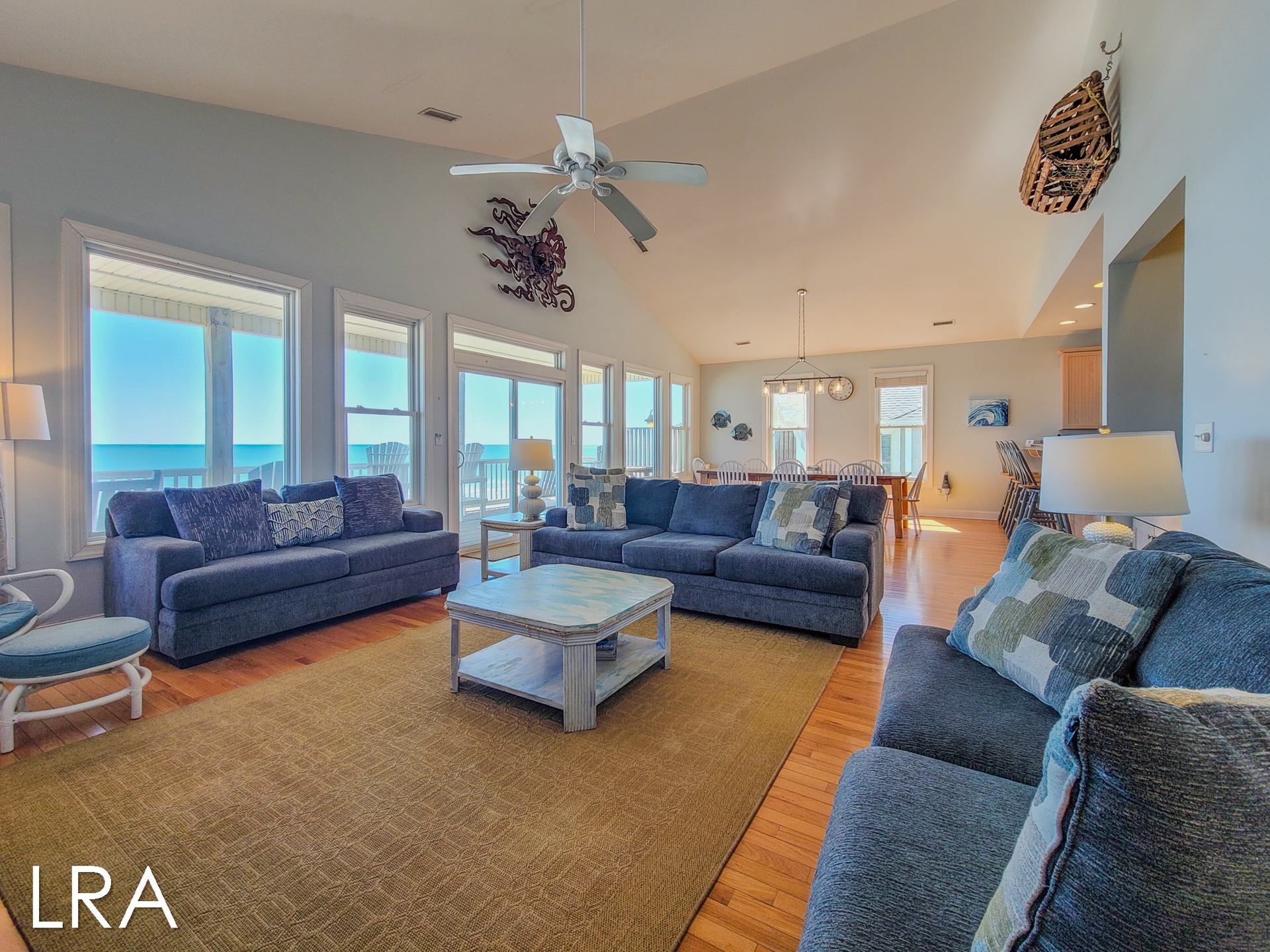 This spacious home features a reverse-living floor plan that maximizes panoramic ocean views from the common areas on the top floor. Step out onto the oceanfront decks to take in captivating sunrises and sunsets, or unwind on the large sun deck perfect for lounging, sunbathing, or simply soaking in the salty sea breeze. With a new privacy fence on the top-floor deck, you’ll enjoy your own secluded piece of paradise. Best of all, “Lucky Enough” has a convenient elevator, giving everyone easy access to all levels, from the ground floor up.