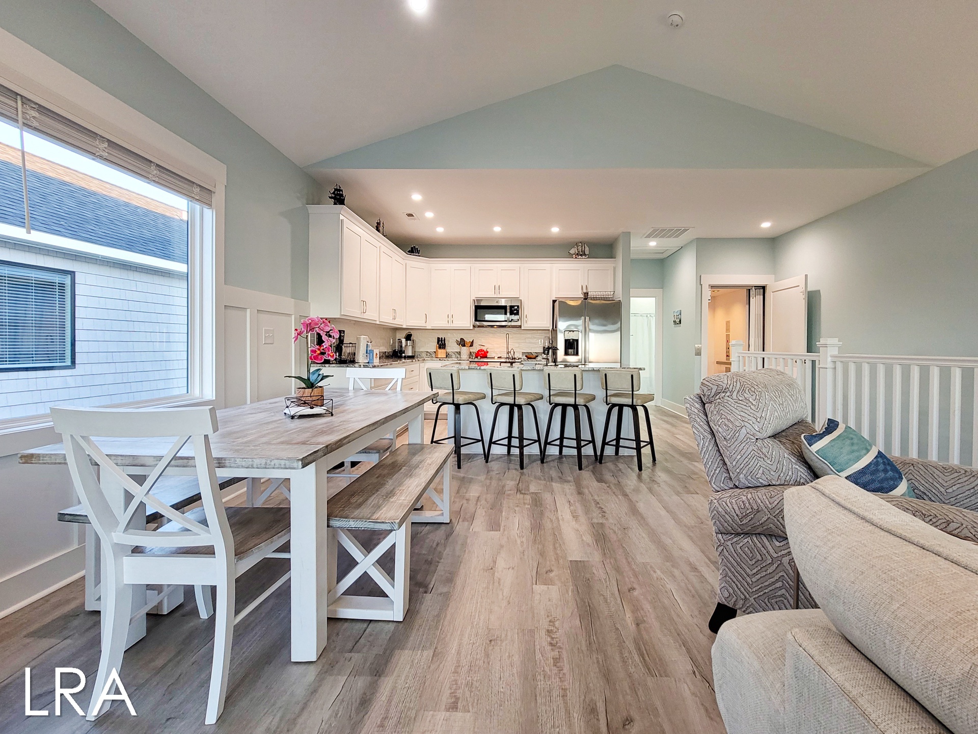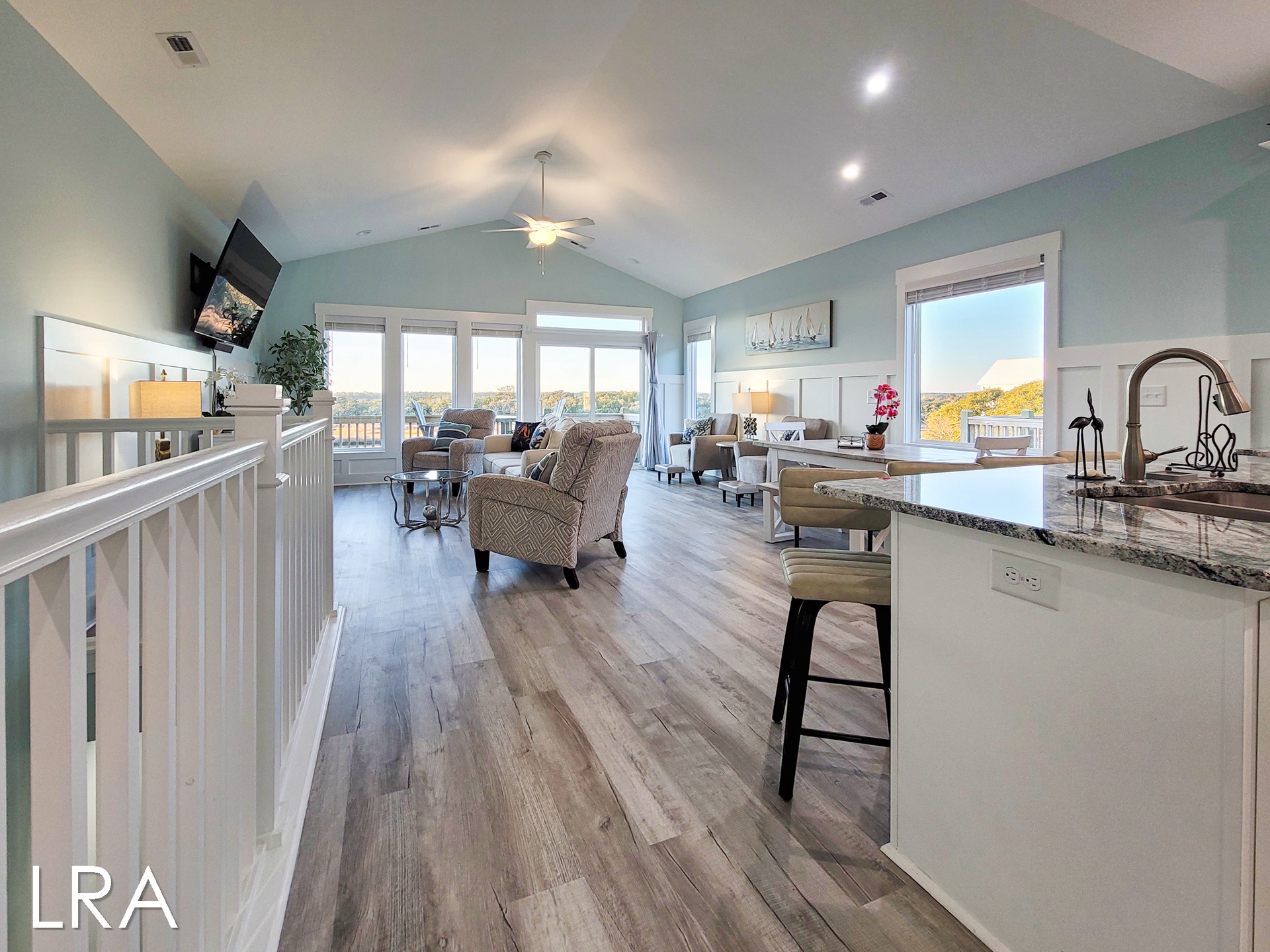 We stayed here a week in March and it was wonderful! The house is very large with plenty of room for all of congregate in and lots of bedrooms for privacy. It feels very new and modern and it has a wonderful living room and kitchen combination area on the top floor with a great view of the sound from the deck. Sunsets were an event we all gathered for every night! It is a short walk to the main commercial area and when we didn't feel like cooking (though the kitchen was the best equipped kitchen I have ever stayed at at the beach), it was easy to walk to several restaurants, as well as a small but well stocked grocery store we went to several times. We will definitely be back, I miss watching the birds fishing in the water out back!- Raymond B from Charlotte, Posted: 03/15/2024