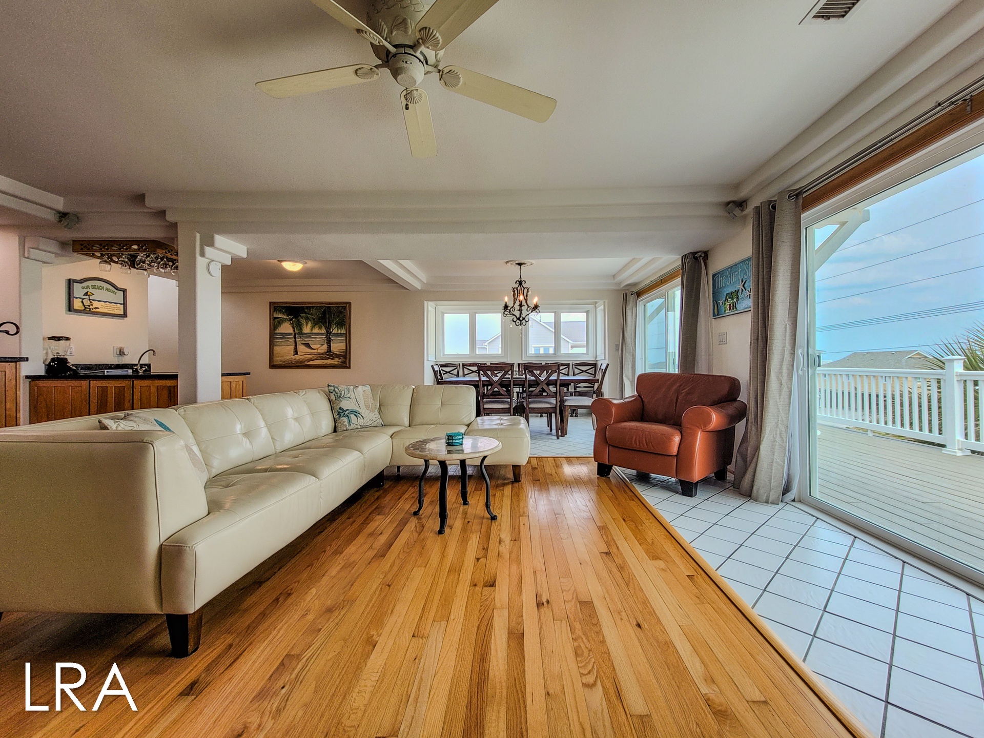 Topsail I must admit that we were concerned after reading a really negative review on this place. Not sure what house the family from the last review visited, but I have nothing but good things to say about Oceanside Manor. As you drive over the bridge to the island, you will realize this is not the typical busy and bustling beach, it’s quiet and peaceful. We were thankful to get out of the heat and into this beautiful air conditioned home. As we explored the house, we were able to take in the amazing scenery on the 3 front decks, that included the beach and ocean across the street and the sunny and perfectly scenic inlet at the back of the house. The main living area at High Tide is spacious, clean, and inviting. A large dining table, couches, big screen tv, and full kitchen. The amount of glassware and tableware could serve food for an army! The deck off of this floor was our favorite for reading and just listening to the ocean. Once settled, we explored the beach. The private walkway and gazebo, which appears to have a brand new deck, lead directly to the soft sand and water. We’re used to a beach that is busy but it was fairly quiet with the occasional families spread out down the spacious beach. My favorite exercise was my morning walk along the warm water with an occasional stop to check out some pretty unique oyster shells. Back up to the gazebo to get out of the sun, I was surprised to see an outdoor shower and foot wash. When not at the beach, I spent time relaxing at the house on one of the 3 front decks with plenty of comfortable seating. This is one of the few houses on this very long road that was across the street from the water but had an unobstructed view. No houses or palm trees to get in the way. The lower deck had lounge chairs and a hot tub. I did enjoy full sun on those lounge chairs but it was a bit too warm to try out the hot tub. The bedrooms reminded me of a typical beach house. Lots of views, quirky “beach” decor, and colorful beachy themed comforters on the beds and the master bedroom couch. It had the feel of a beach cottage but in a very large space! One thing that I would like to see addressed is the step up to the hot tub deck. I may have stubbed a toe or 4….maybe a caution sign or colorful tape? There are houses to your right and left but the house feels private as there are trees separating neighbors. As far as restaurants go, there are a ton of options and lots of great fresh seafood. My all time favorite restaurant was Sear’s Landing, just over the bridge. I highly recommend their blue crab fritters and fried green tomatoes! Friendly staff as well! A few pointers: the sand gets VERY hot as the day goes on (I’d suggest water shoes or flip flops). You will also need to buy some chairs and or towels/blankets for the beach. I did notice there were several boogie boards in the garage. This was the most peaceful vacation I have had in a long time. I cant wait for another trip back soon.- Anonymous U , Posted: 07/19/2025