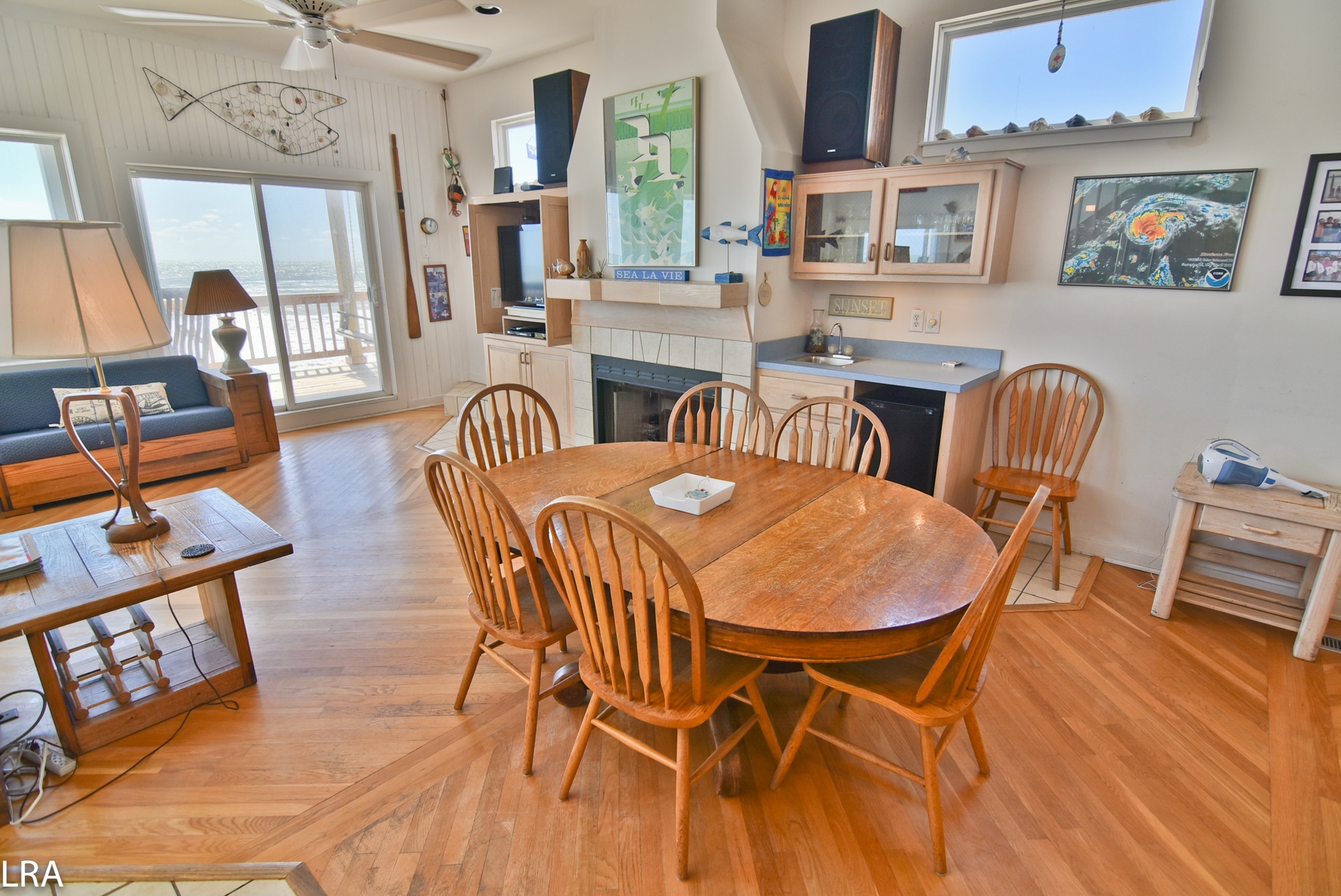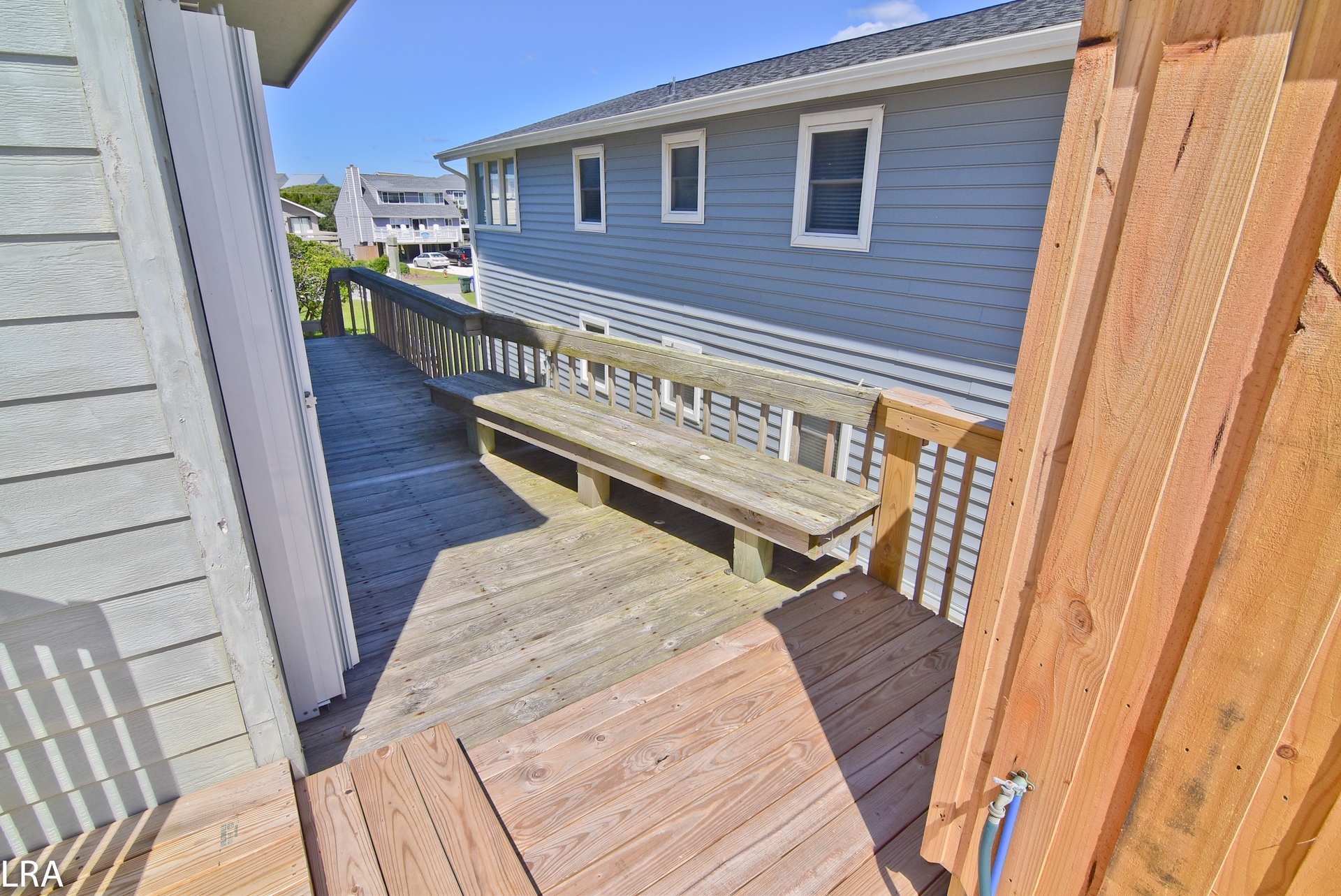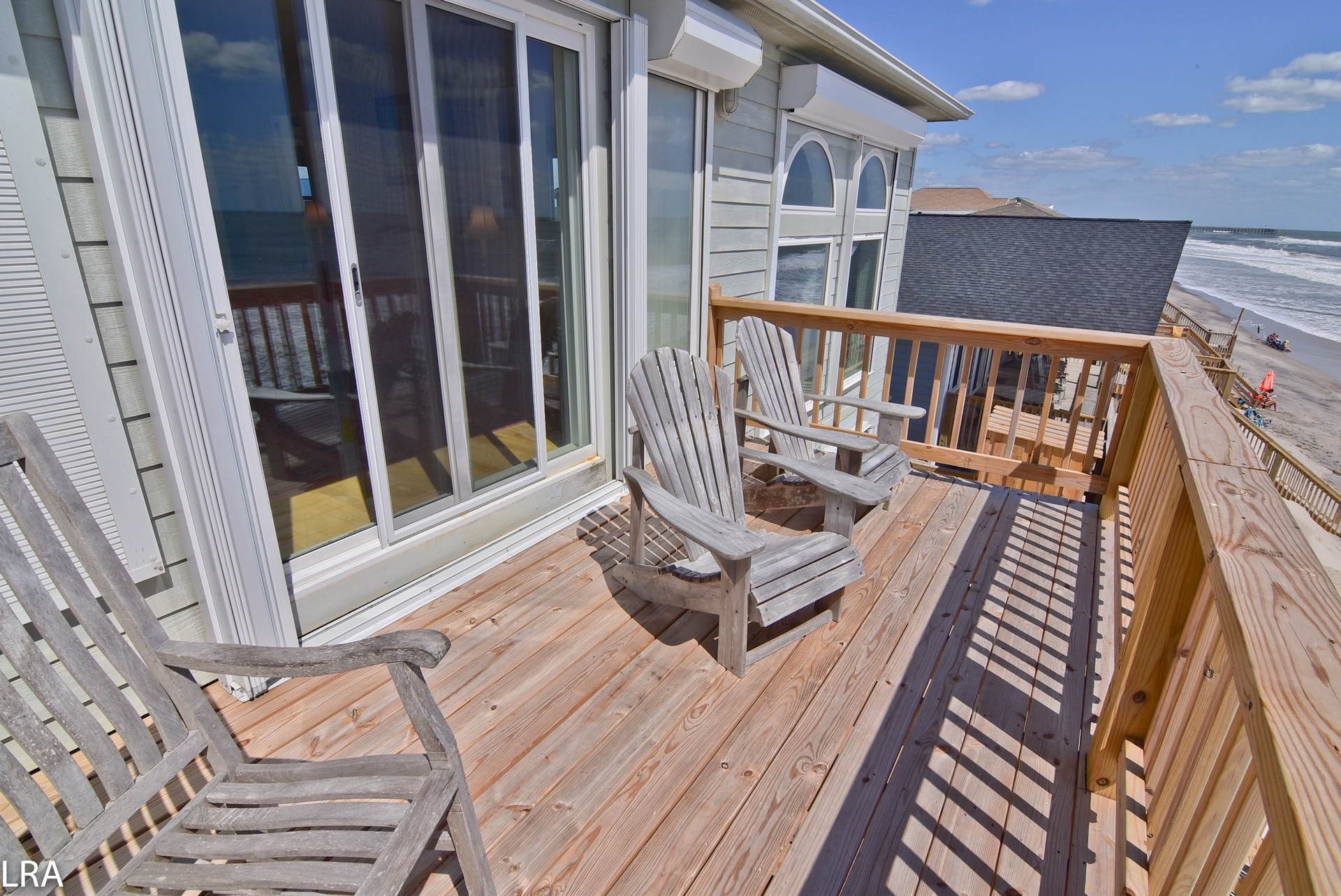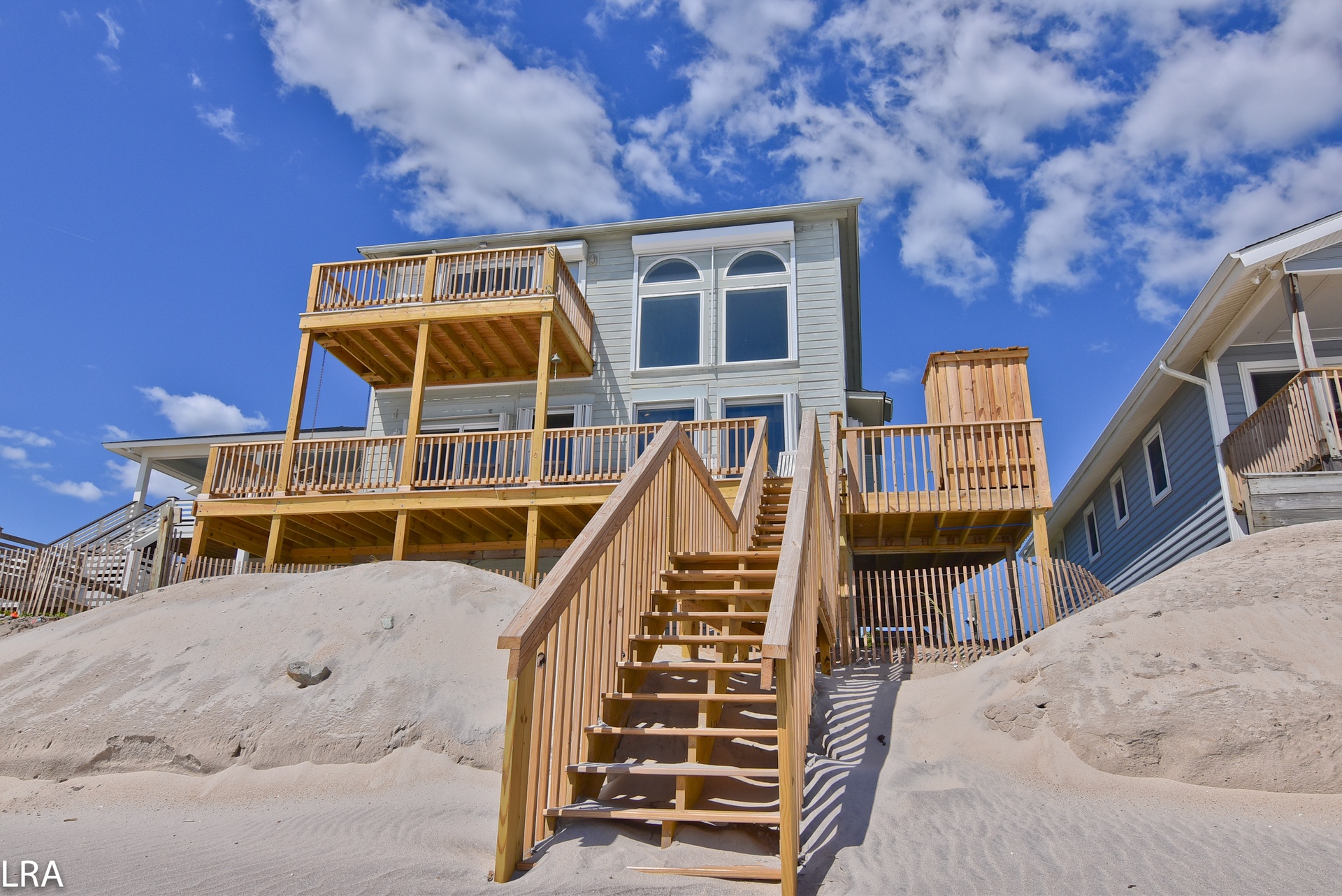The large, spacious kitchen area provides ample room for several guests to cook simultaneously. Two open dining areas allow for two large tables to be near each other so that guests can dine together without crowding one space. The great room provides plenty of seating for guests and has one large portion open with a tall vaulted ceiling to let in natural light from large oceanfront windows. The oceanfront deck provides ample room for everyone to sit and has rocking chairs and a picnic table with an umbrella to use. Cable TV and high-speed wireless internet are provided for the time you spend indoors. An enclosed outside shower has hot & cold water for when you come in from enjoying the waves. The washer & dryer are located inside the property.