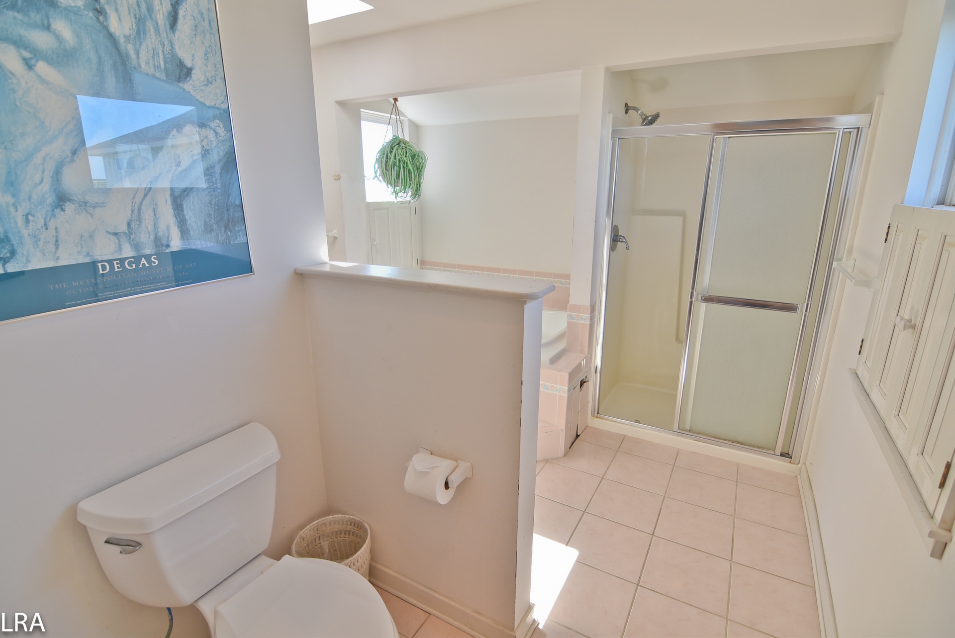 The ground level (entry-level) has two bedrooms and one bathroom. The bedroom on the street side has a Double, and the bedroom on the ocean side has two sets of Bunk Beds. The first floor (middle level) has a large living area, two dining areas, a spacious kitchen, a laundry closet, two street-side bedrooms, and two full bathrooms. On this level, the north side bedroom has a Queen and a private bathroom, and the south side bedroom has a Double bed and a set of Bunk Beds. The second bathroom and laundry closet on this level are in the hallway that connects the bedrooms to the common areas. The second floor (top level) has 2 bedrooms and one bathroom. The oceanfront Master Bedroom has a Queen and a private oceanfront balcony, while the street-side bedroom has a Double. The large bathroom on this level is shared between the bedrooms and has a Jacuzzi.