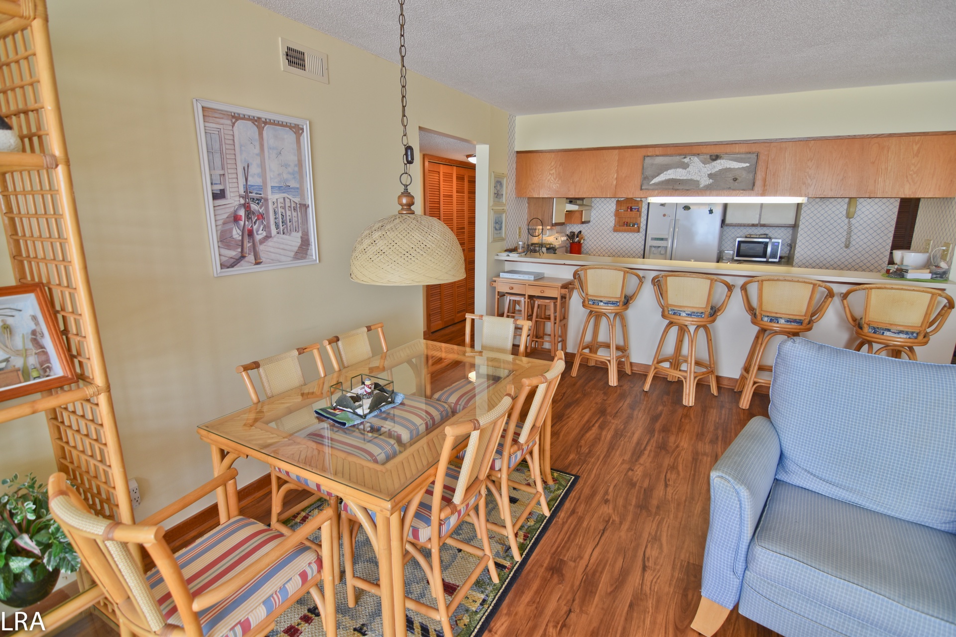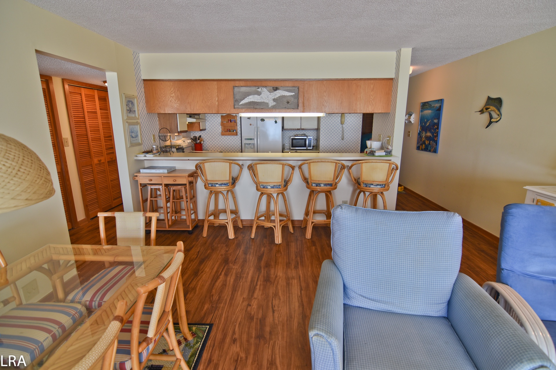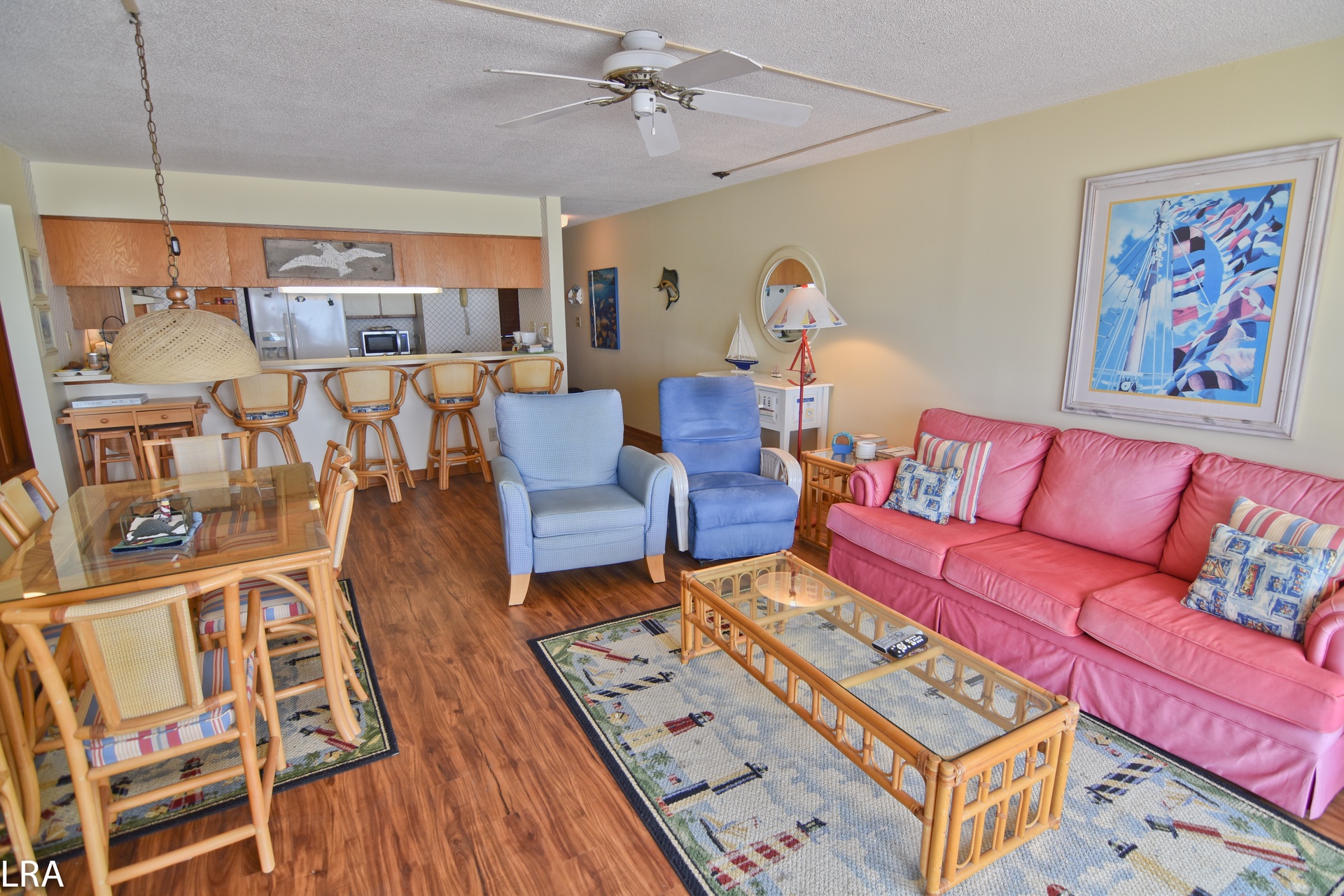 This spacious second-floor retreat offers the perfect blend of coastal comfort and incredible views, with the Atlantic Ocean greeting you right from your private balcony. Inside, the open-concept living space is bright, breezy, and full of coastal charm. Relax in the comfortably furnished living room, prep meals in the fully equipped kitchen with modern appliances, and enjoy quality time around the dining table with friends and family. The layout makes it easy to kick back and enjoy every moment—whether you’re catching a movie, playing board games, or just soaking up the ocean air drifting in through the sliding glass doors.