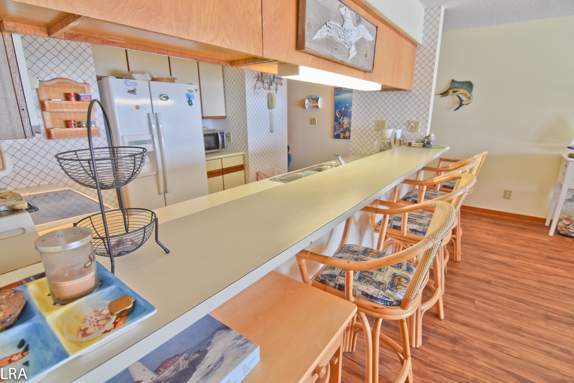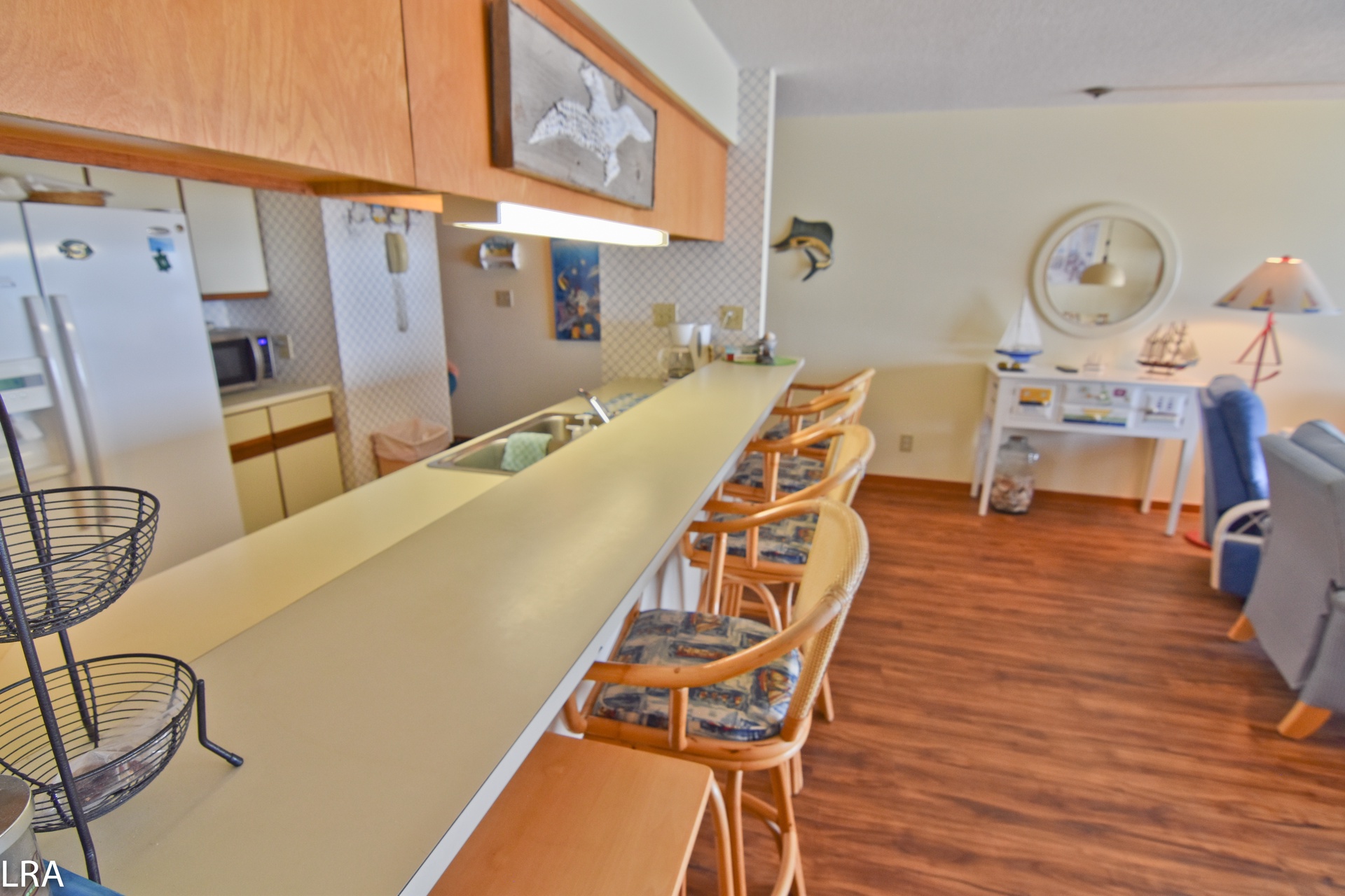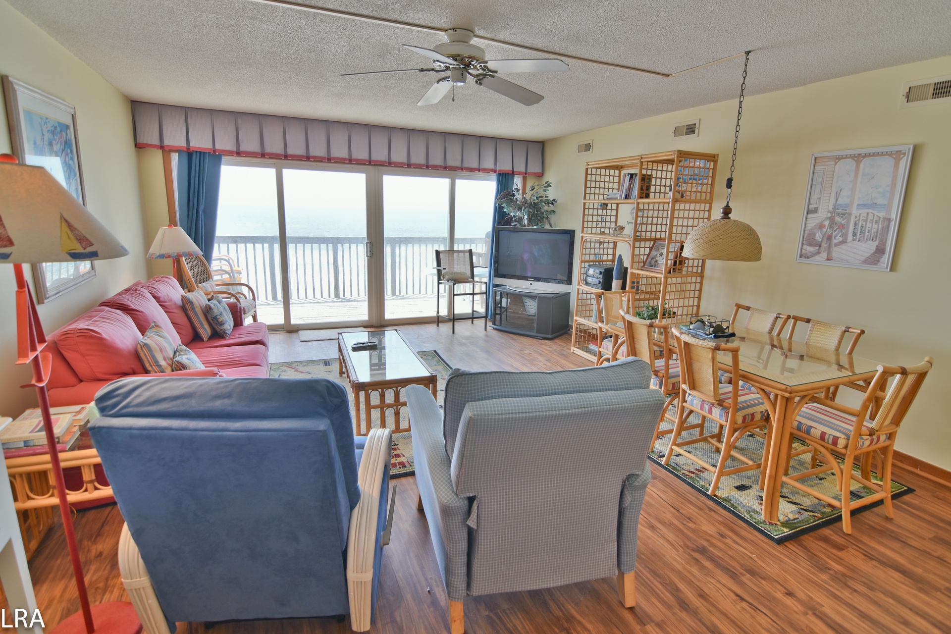 This spacious second-floor retreat offers the perfect blend of coastal comfort and incredible views, with the Atlantic Ocean greeting you right from your private balcony. Inside, the open-concept living space is bright, breezy, and full of coastal charm. Relax in the comfortably furnished living room, prep meals in the fully equipped kitchen with modern appliances, and enjoy quality time around the dining table with friends and family. The layout makes it easy to kick back and enjoy every moment—whether you’re catching a movie, playing board games, or just soaking up the ocean air drifting in through the sliding glass doors.