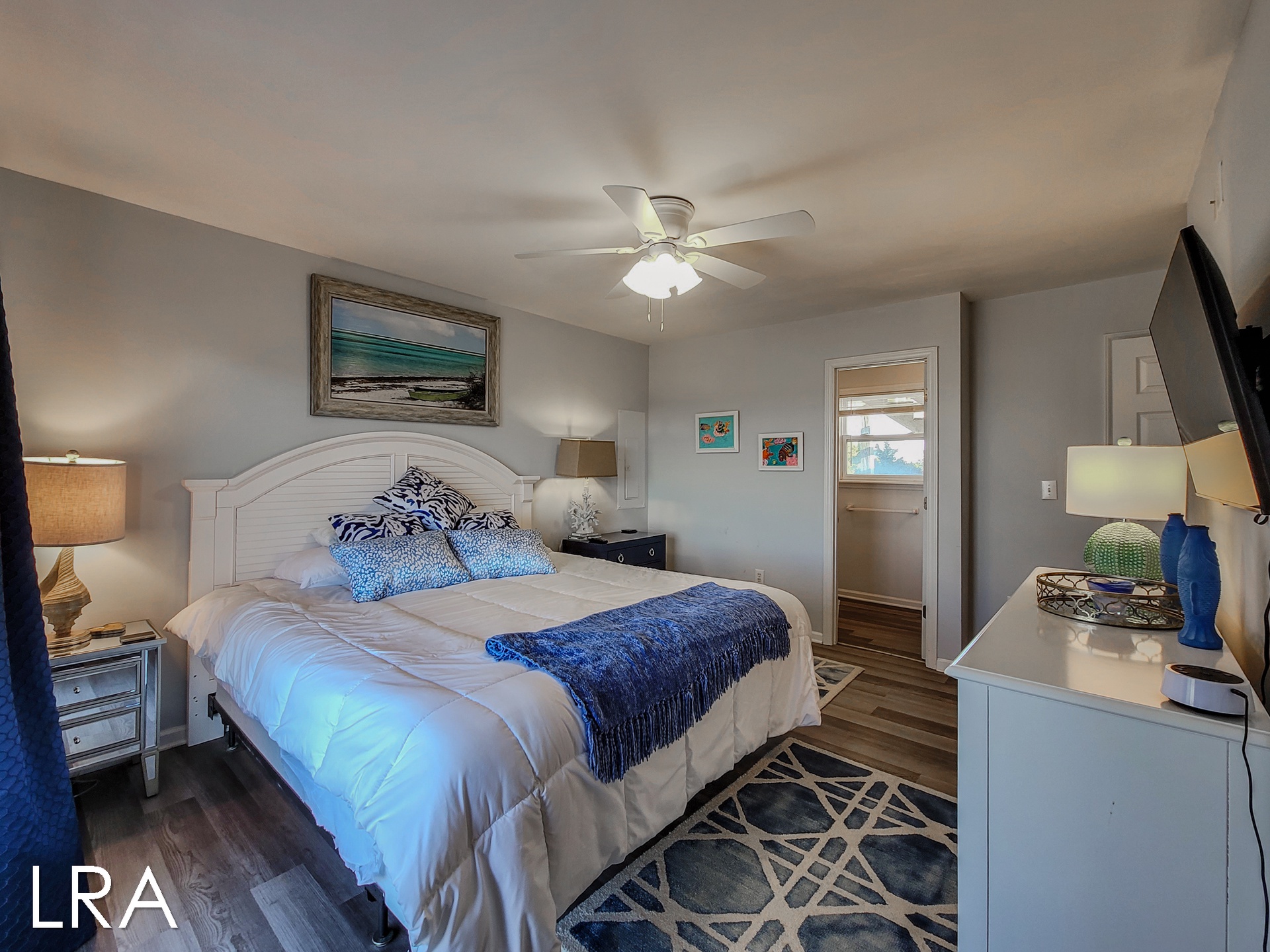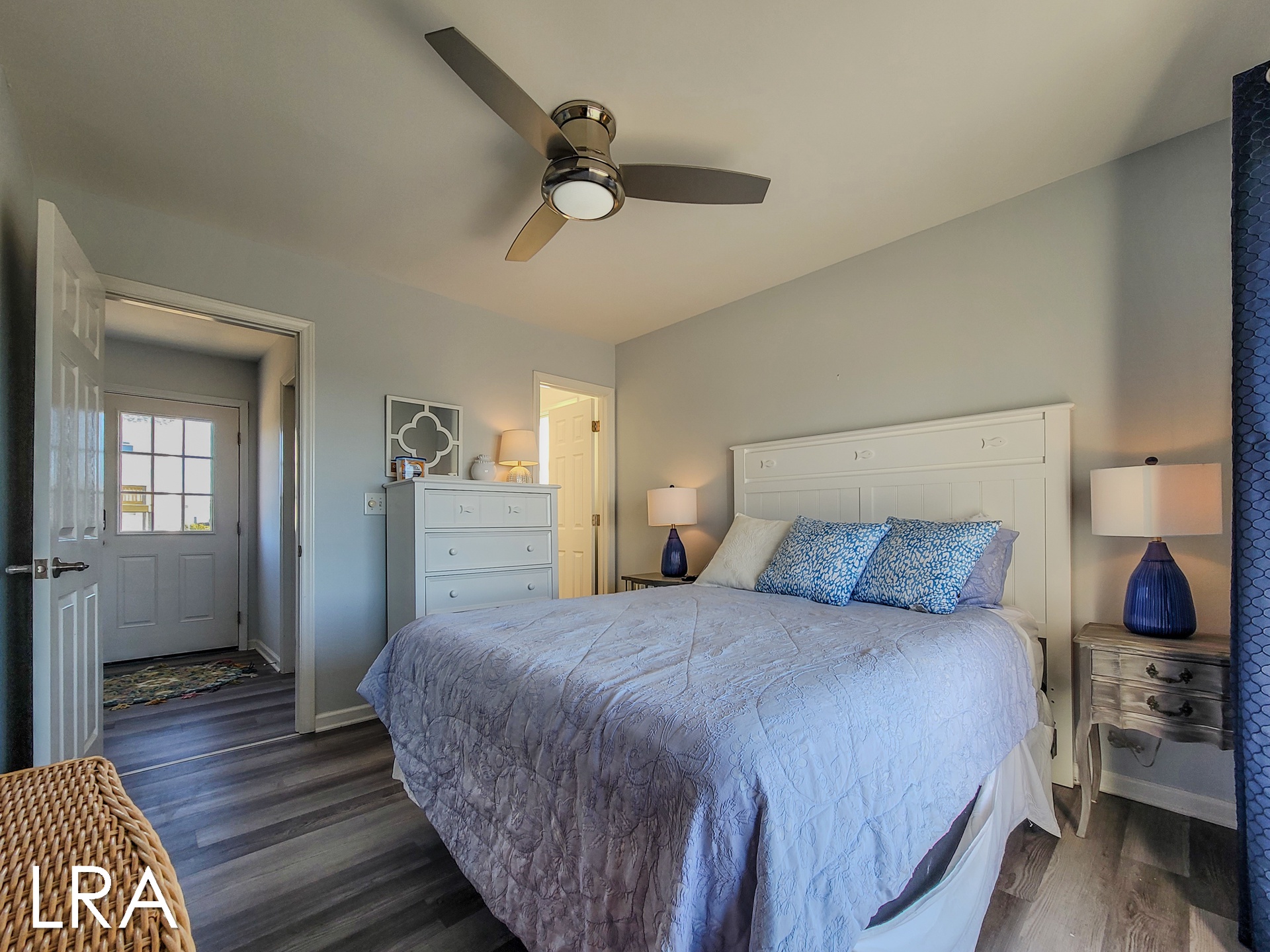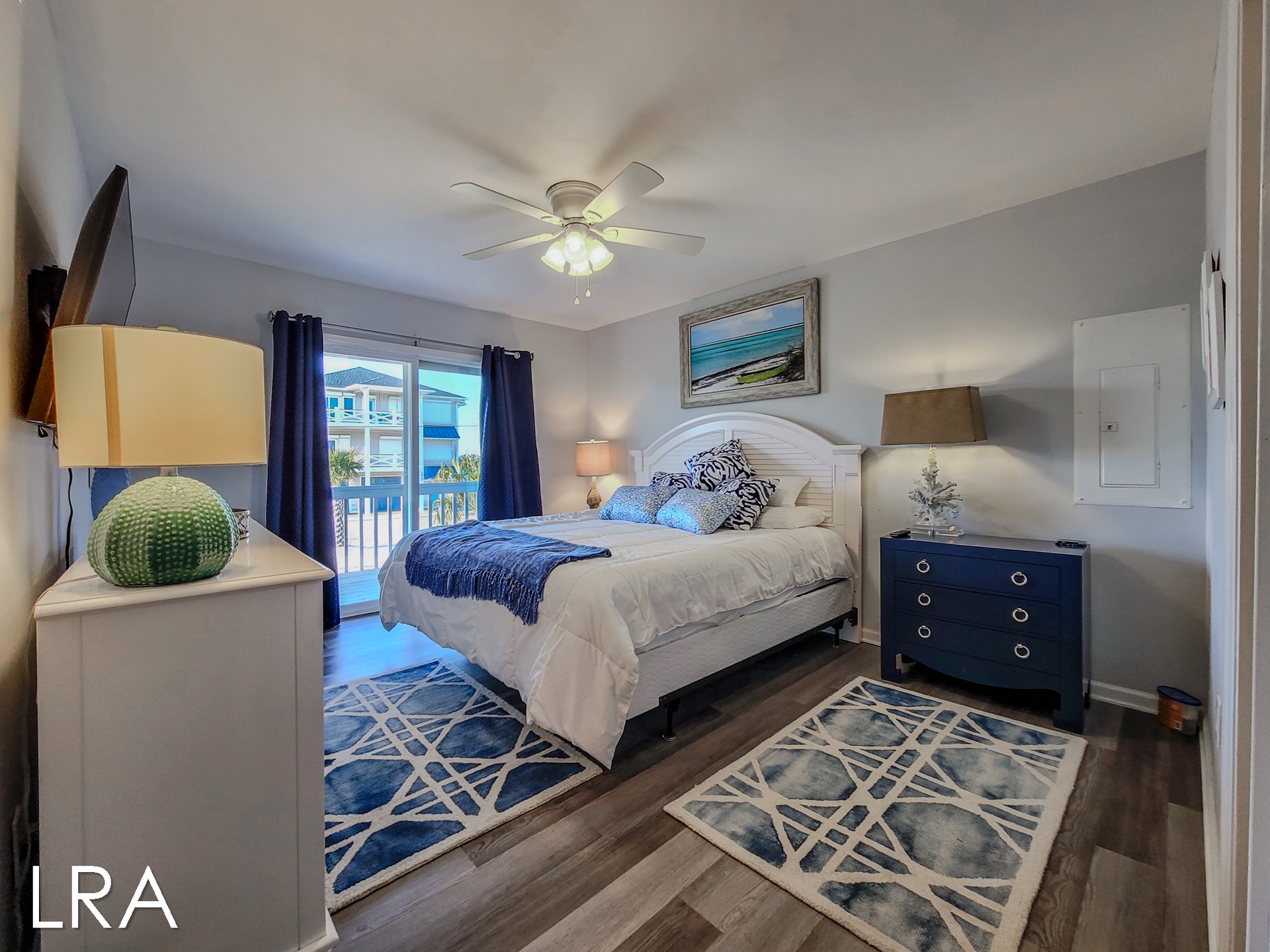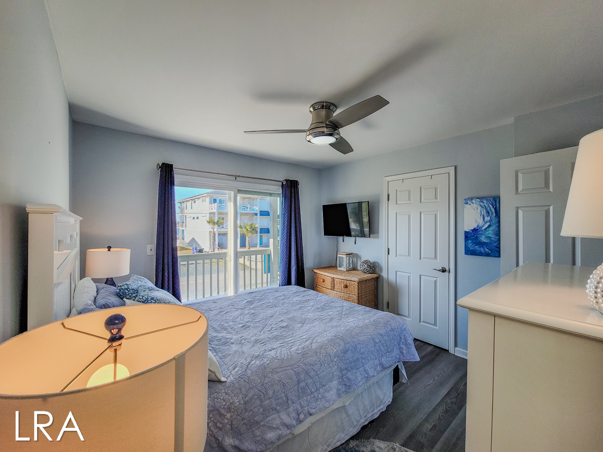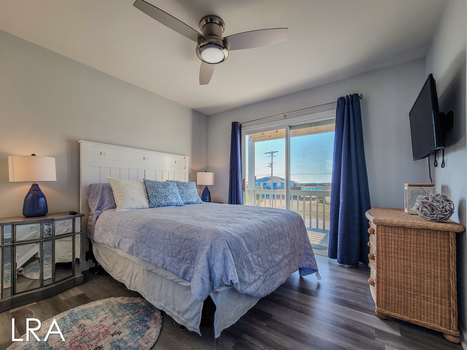 As you arrive at the property you are greeted by ample parking, both covered and not covered. The carport area offers easy access to the hot and cold enclosed shower so you can wash the sand away before you head inside. Accessible from the backside of the house, the main door is located on the middle floor and offers personal pin pad access for guest entry. Access codes will be sent to guests shortly before arrival. You will enter this reverse floor plan property on the bedroom level. Directly ahead is the Queen bedroom. This room offers a Queen Bed, Flat Screen Smart TV, sound side deck access, and access to the shared full bathroom. The next bedroom down the hall is the Twin Bunk room. This room offers a Twin bed and a set of Twin Bunk Beds, along with a Flat Screen Smart TV, and sound side deck access. The last bedroom on this floor is located at the end of the hall and would be considered the Master Suite. This room offers a King Bed, private full bath with tub, Flat Screen Smart TV, and access to the sound side deck as well. The full-sized washer and dryer are located in the hall behind the bifold doors for easy access.