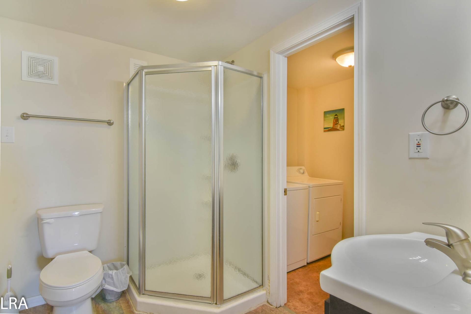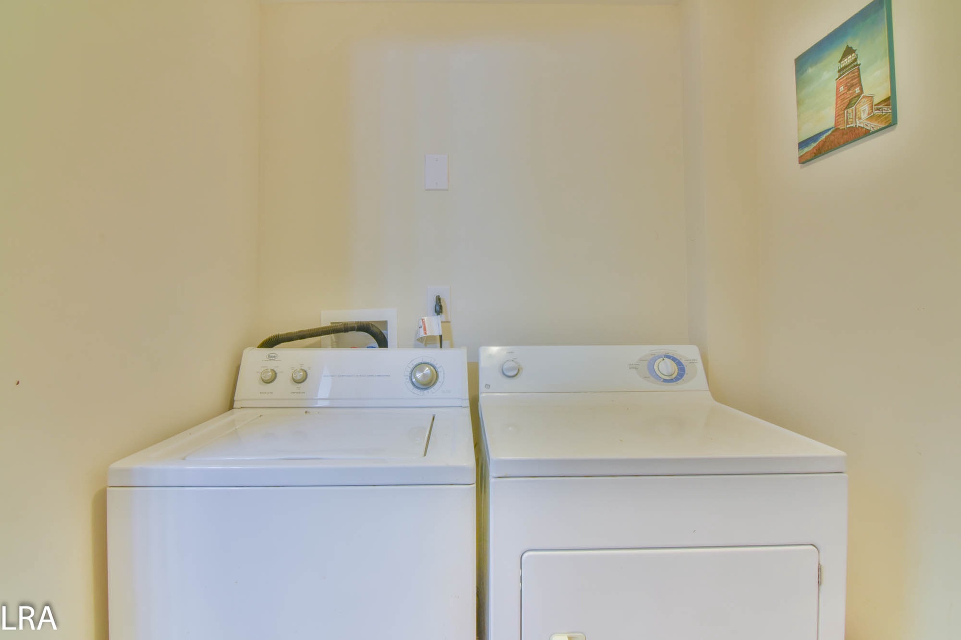 To answer your question, yes there is a washer and dryer at the unit "Shore's Bliss".