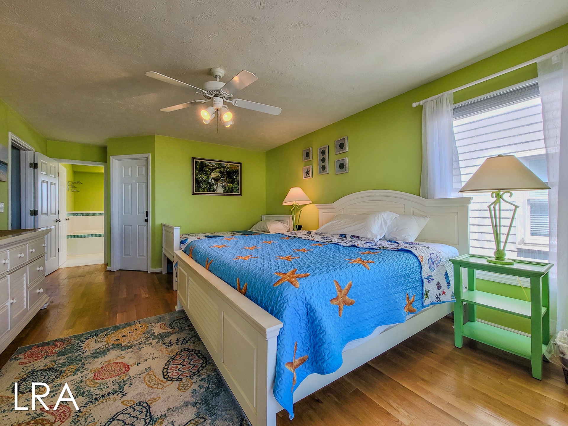 We stayed at Sunny Turtle for our yearly vacation. The location was fantastic. It was just a short walk to Surf City which was nice and having access to the beach right off the deck was great and having a fenced in yard for our dog was a huge asset. However I was highly disappointed that the master bedroom walk in closet had a lock on it for the owners use. I was left with no where to hang any of my clothes or put my bags. I had to make due with one dresser and piled all of my luggage on the twin bed which by the way made the room cramped. I have a nice bruise on my thigh from running into the footboard of the twin bed. Also, the one gate meant to keep the fenced in yard secure was damaged. You couldn't latch the gate my husband used a tie down strap to keep it closed so our dog couldn't get out. We also found dirty dishes in the cabinets. I'd love to leave a 5 star review because the house itself is beautiful and the closeness to everything along with a fenced in yard are all great I was just very unhappy with the things I mentioned.- Anonymous U , Posted: 09/23/2024