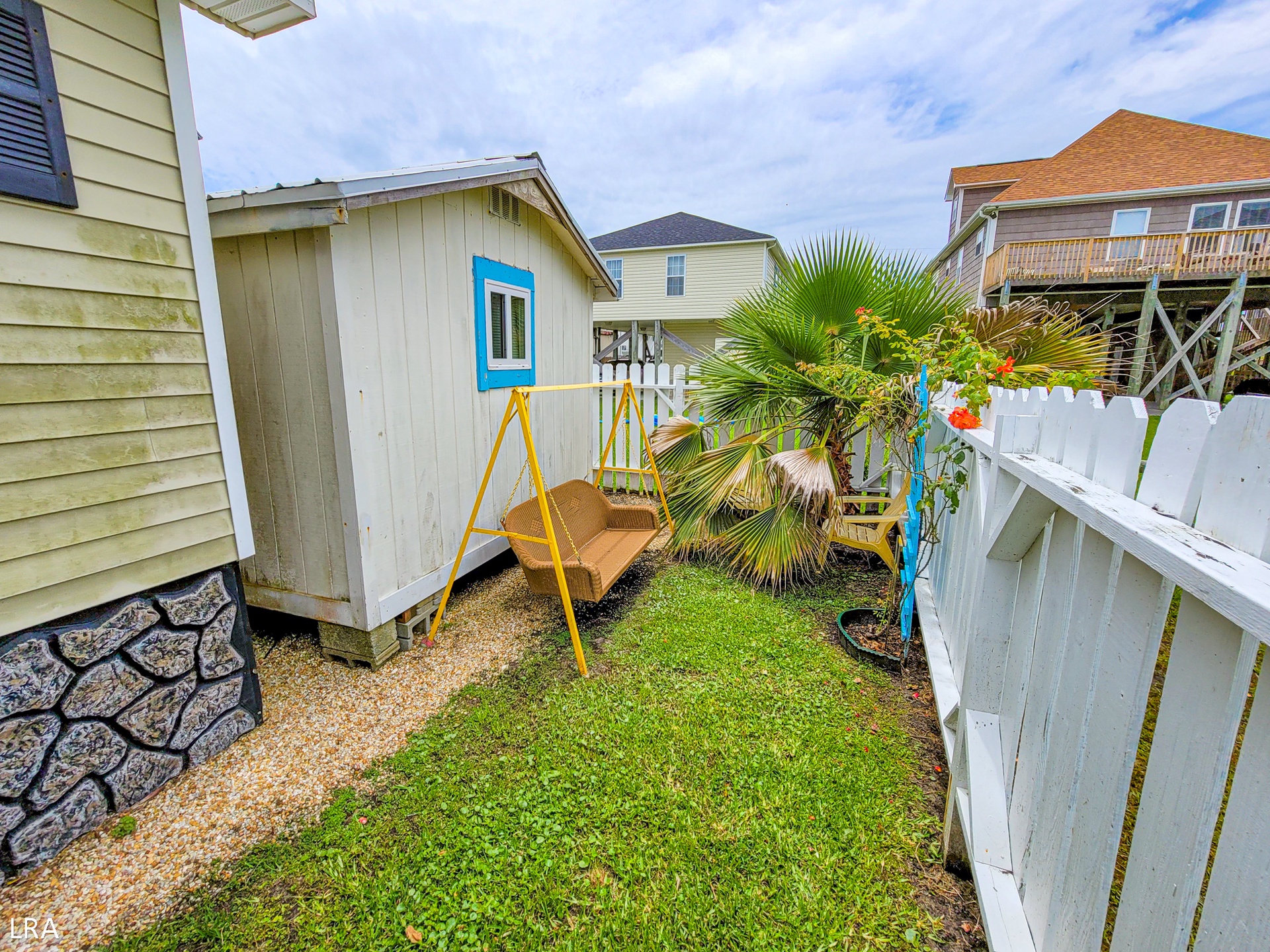 The backyard offers a secluded sitting area with chairs, games, and a small fire pit so you and yours can sit out and enjoy our fantastic coastal weather. The recently renovated shed has been turned into an outdoor oasis! "The Summering Place" as we like to call it offers renters an enclosed heated and cooled hang-out area separate from the main house. The owner has stocked this little nest so guests can hang out and relax or cozy up and enjoy cocktails while listening to the music coming from the Trailer Bar or Tortuga's Nest.