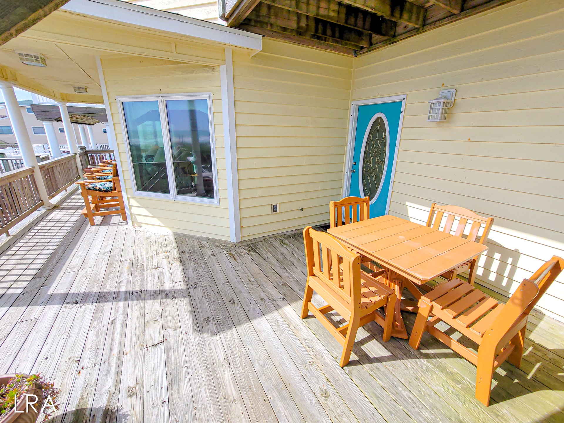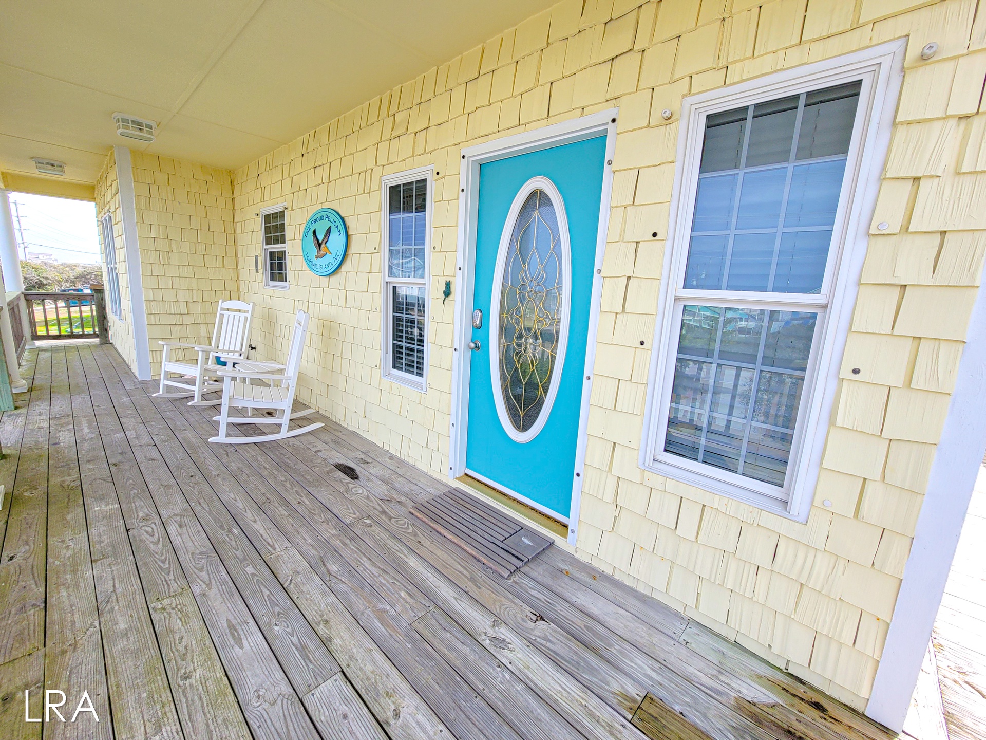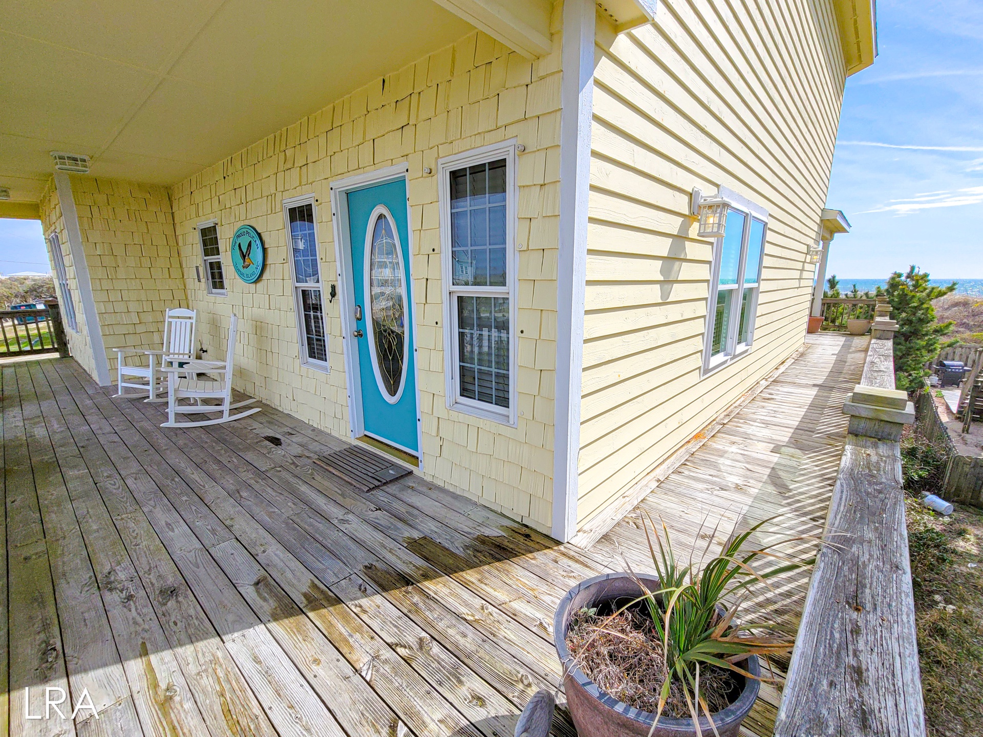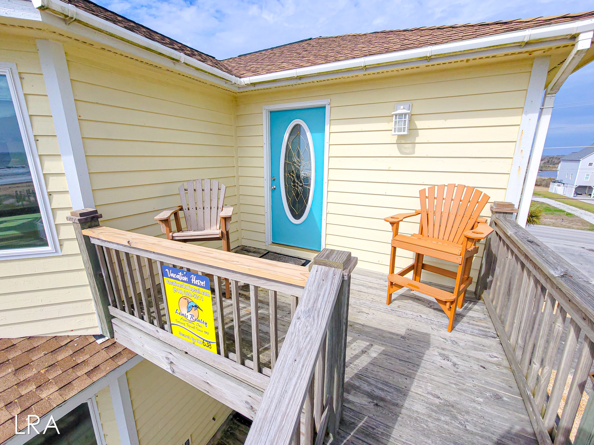 When you enter the first floor you are greeted with a crisp, white, fully equipped kitchen with all the major appliances and everything you need to serve your family proudly! The dining room offers seating for 8 people and an additional 4 seats at the bar. Past the stairwell, you have an open living room with plenty of seating (including a queen sleeper sofa) for the whole family to gather together. This room is complete with a large, flat-screen Smart TV so you can enjoy your favorite shows and movies after a long day on the beach. The rounded shape of this room invites natural light to flood in from the multiple oceanfront windows. Take a step outside and proudly enjoy your own piece of paradise. The spanning deck offers both covered and uncovered areas so you can enjoy the salt air all day long. Enjoy meals with an ocean view, or just sit back and relax in any of the multiple chairs provided while you watch Topsail Islands very own crew of Pelicans fly by throughout the day. Stepping back inside, you will find the first bedroom and bathroom. The Full shared bathroom offers a large vanity sink and shower tub combo. The private bedroom is located at the end of the hall and offers a Queen bed and street-side views.
