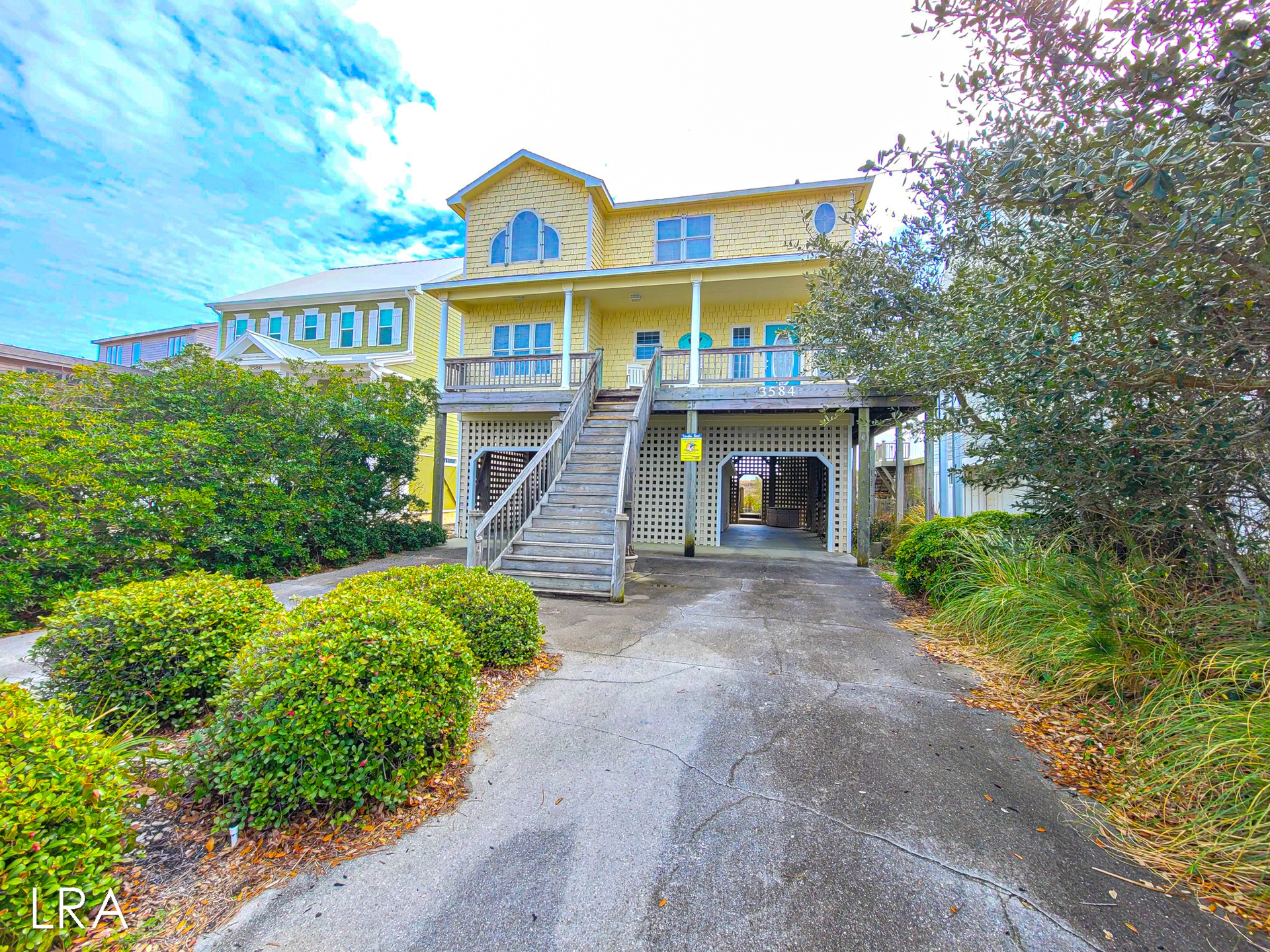 When you first arrive you are greeted by ample parking in the large driveway. The carport offers additional covered parking for those days when the weather misbehaving. This covered area is also great for storing beach gear so that you can keep the sand outside where it belongs. Head up the front stairs and use your keyless entry code to get your vacation started!