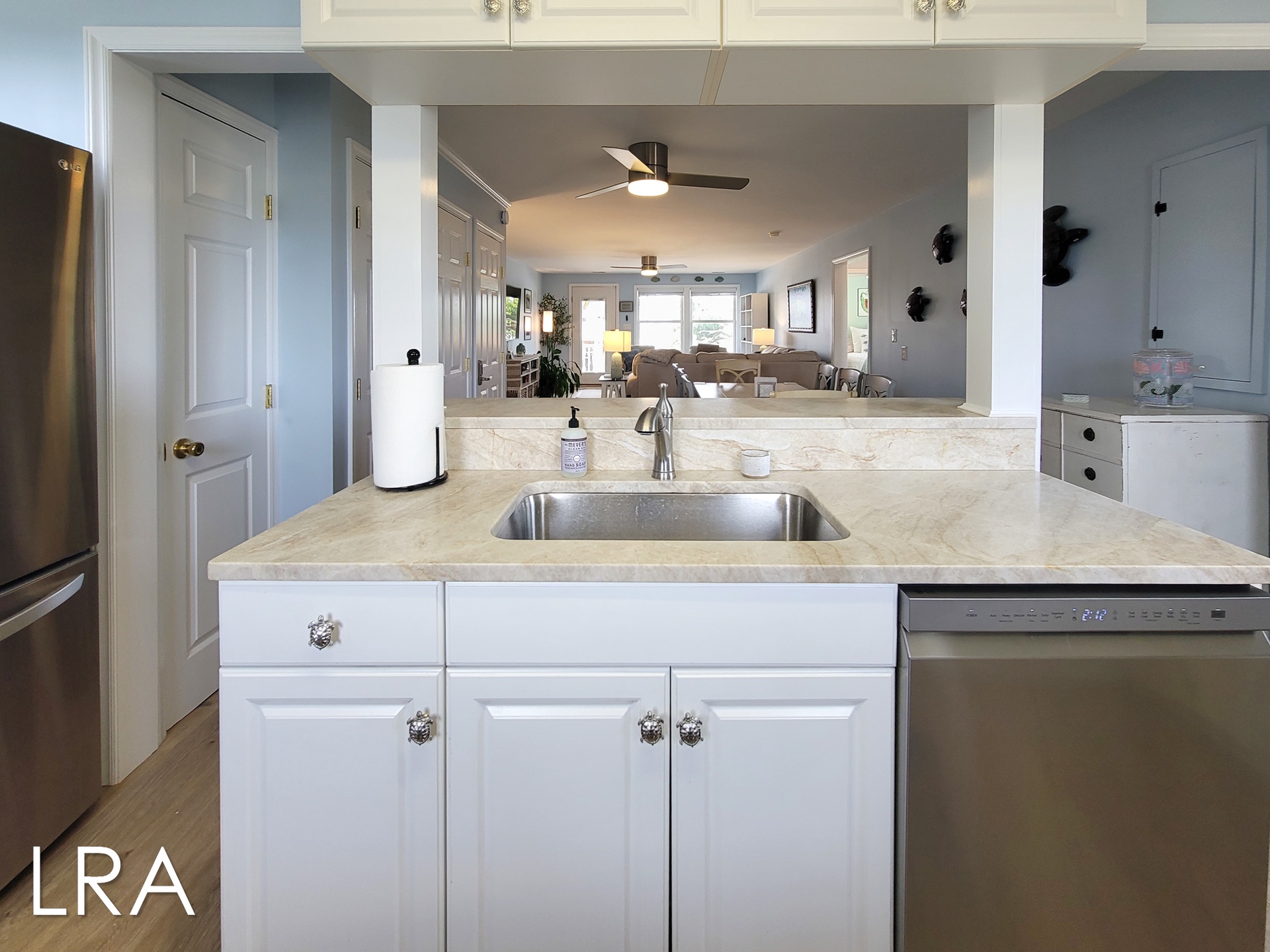 The main living areas are bright and inviting, perfect for gathering after a long day in the sun, sharing meals, or just relaxing and cooling off. Whether you’re starting your morning slow with coffee or winding down in the evening with sandy feet and sun-kissed skin, the home makes it easy to settle into vacation mode.